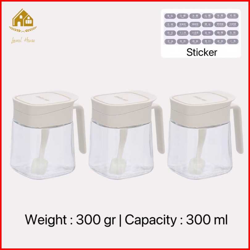 3 Pieces Toples Botol Kaca Tempat Penyimpanan Garam Bumbu Dapur Putih Seasoning Jar Storage Box Aesthetic