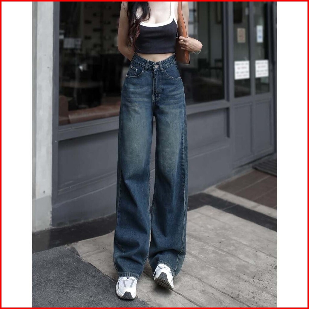 Beeje - Celana Baggy Jeans Retro Gombrong Wanita Loose - Celana Jeans Wanita Korean Style Terbaru