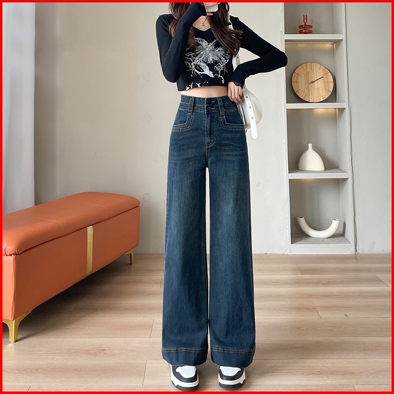Ready Stock Celana Highwaist Jeans Wanita Celana Jeans Panjang Wanita Celana Kulot Straight Celana Jeans Longgar Denim C