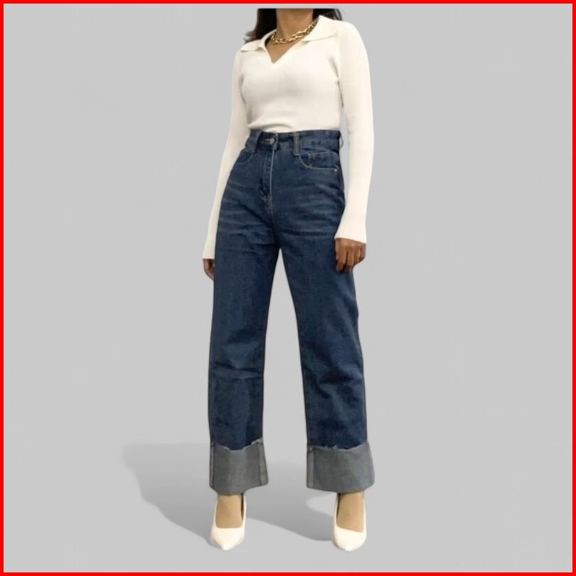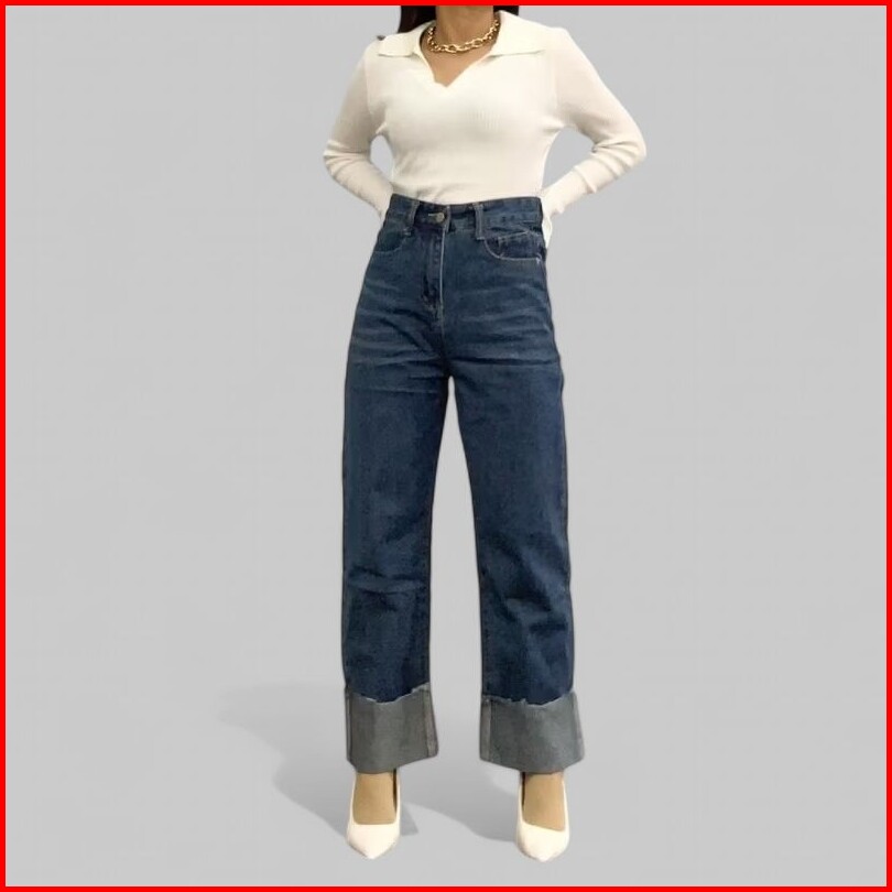 Celana Panjang Jeans Highwaist Wanita Kulot Lipat Celana Jeans E21 Wanita