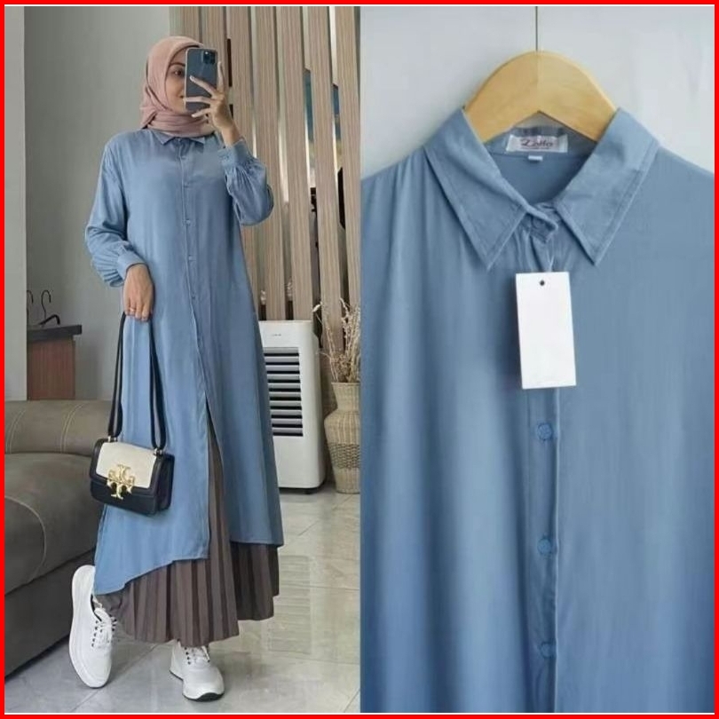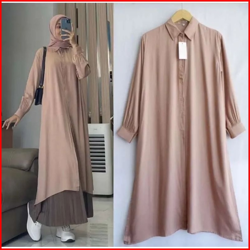 Rayon Twill Laura Long Tunik Rayon Twill Premium Atasan Tunik Long Oversize Wanita