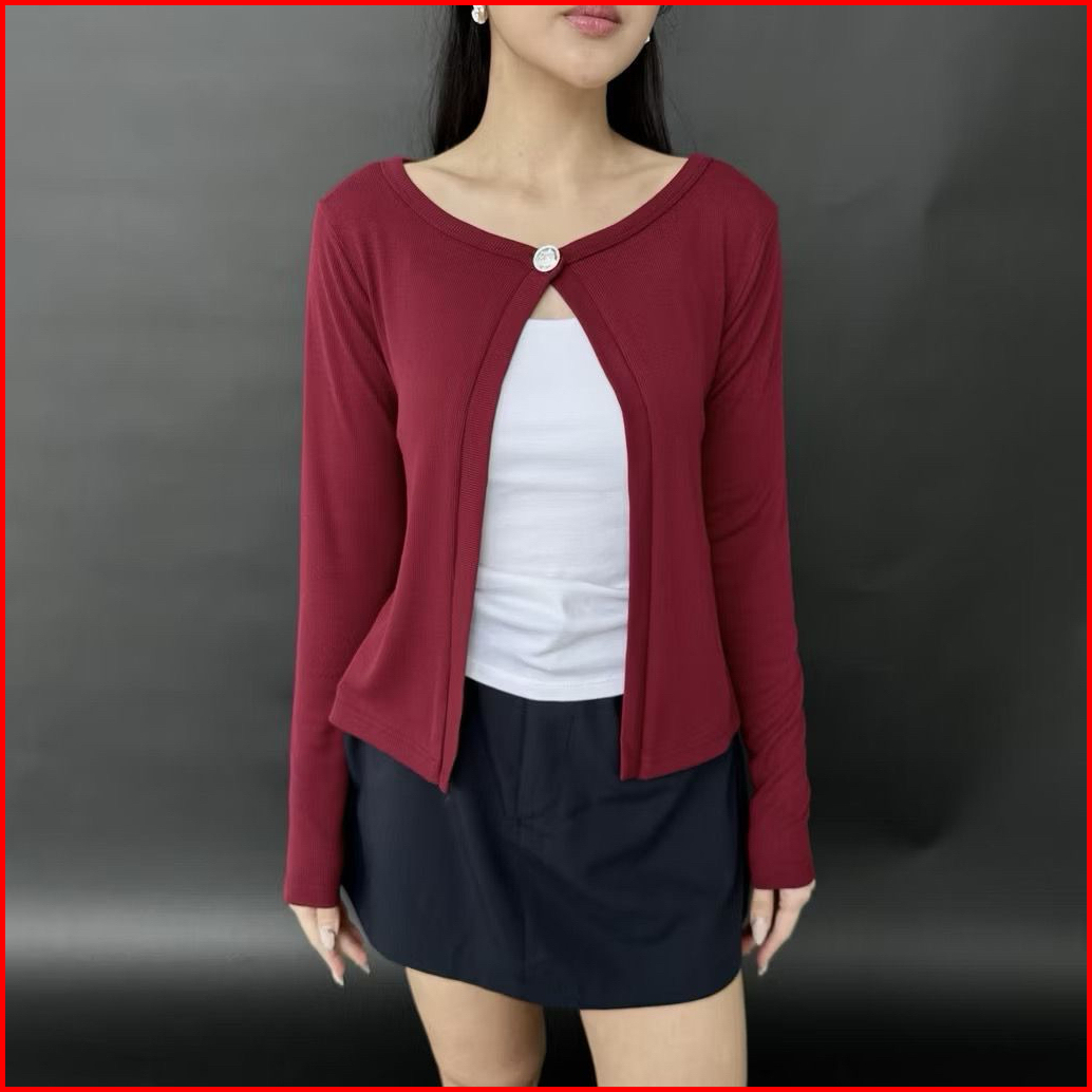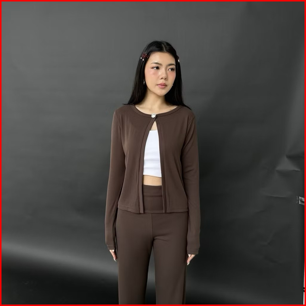 Siji Top Rib - Atasan Knit Wanita Cardigan Outer Lengan Panjang Basic Korean Top Summer Baju Ribbed Knit Kancing Rib Wan