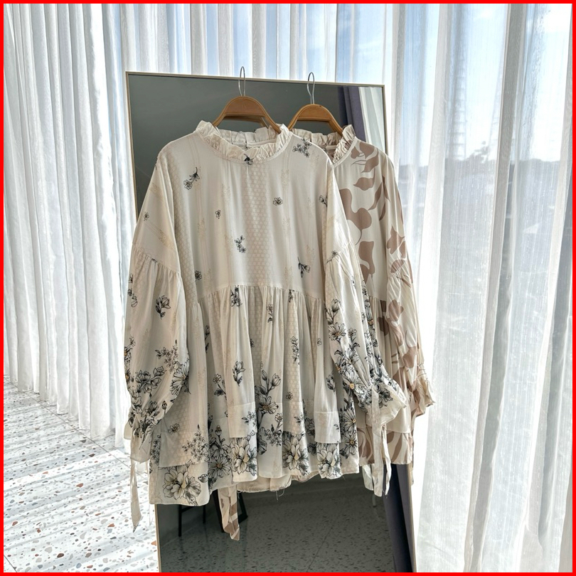Myshirt Tunik Batwing Rempel Kerah Bulat Motif