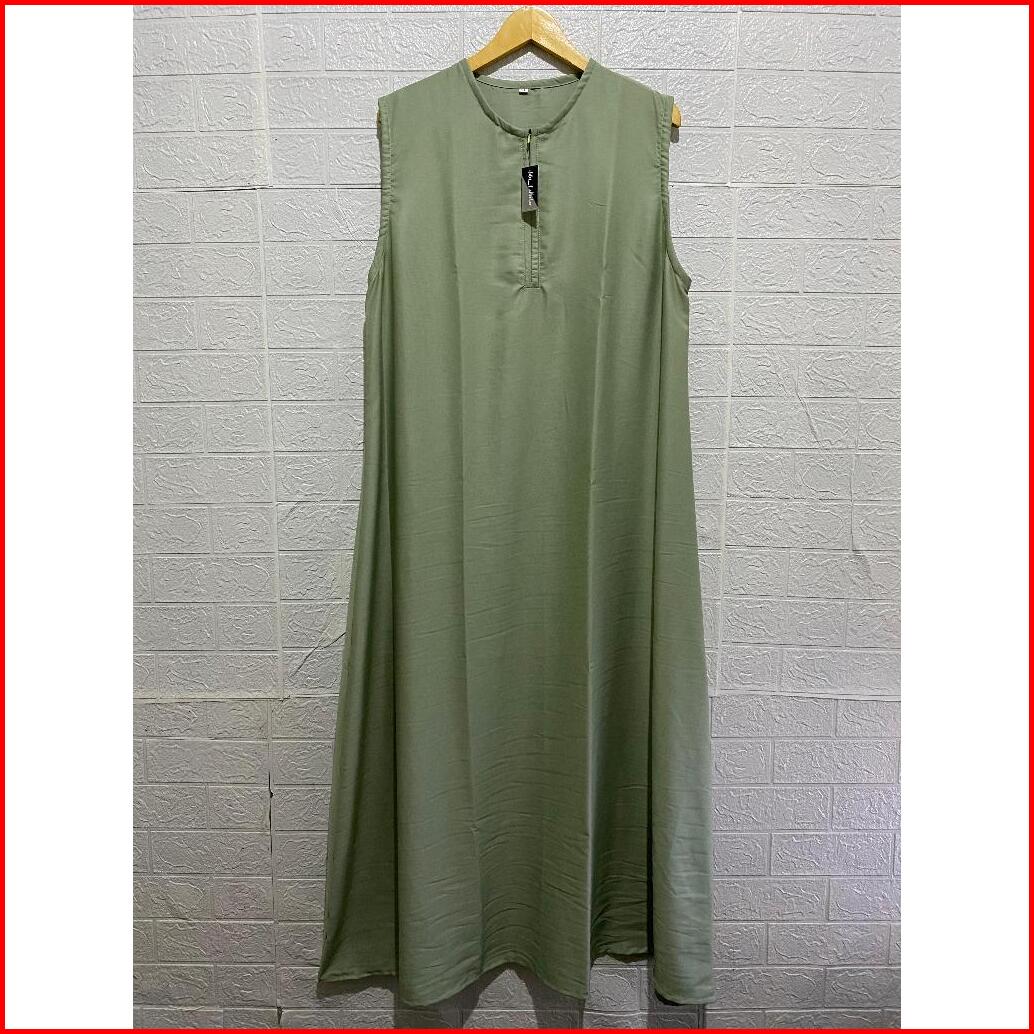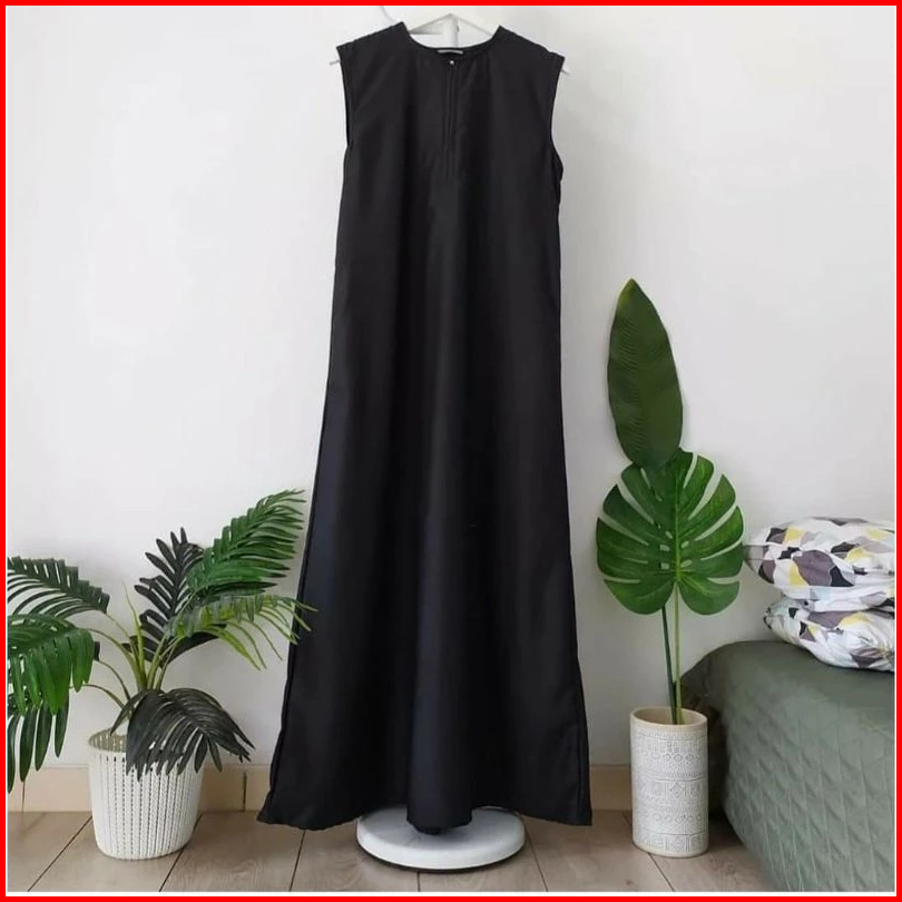 Inner Dress Wanita Rayon Twill Premium Gamis Tanpa Lengan Sleting Depan Gamis Kutungan Gamis Polos Terbaru Kekinian