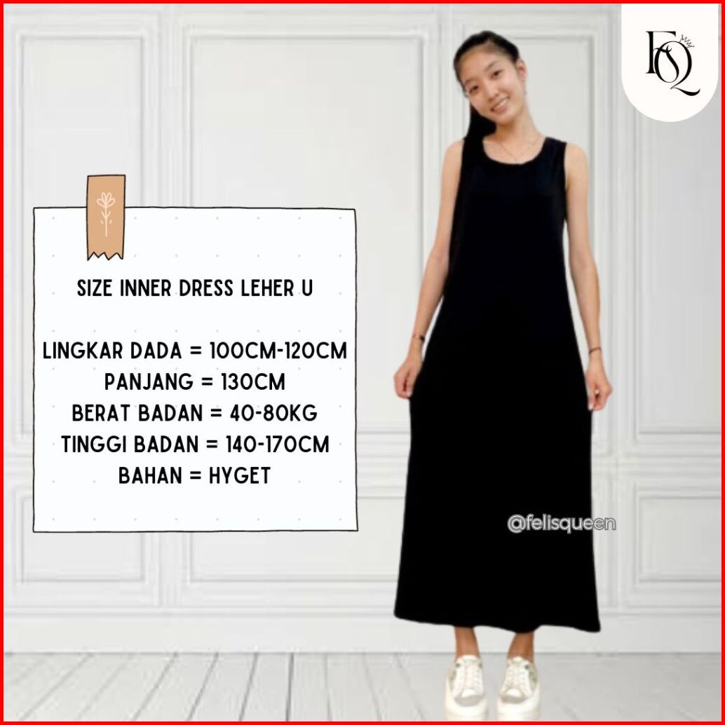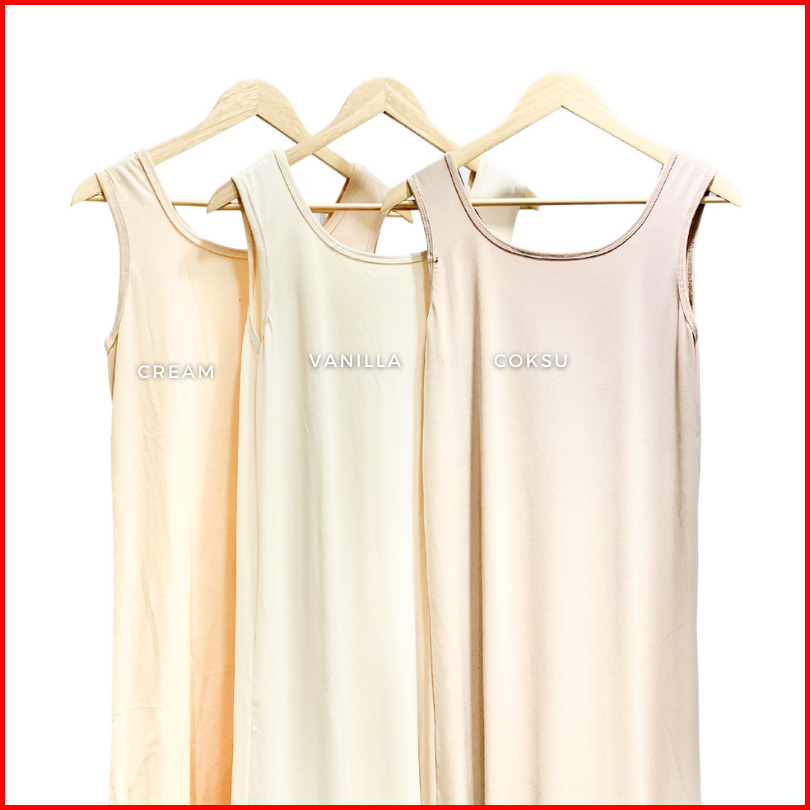 Long Dress Tanpa Lengan Polos Inner Dress Leher U Panjang Bahan Rayon Super Grade A Inner Gamis Wanita Basic Dress