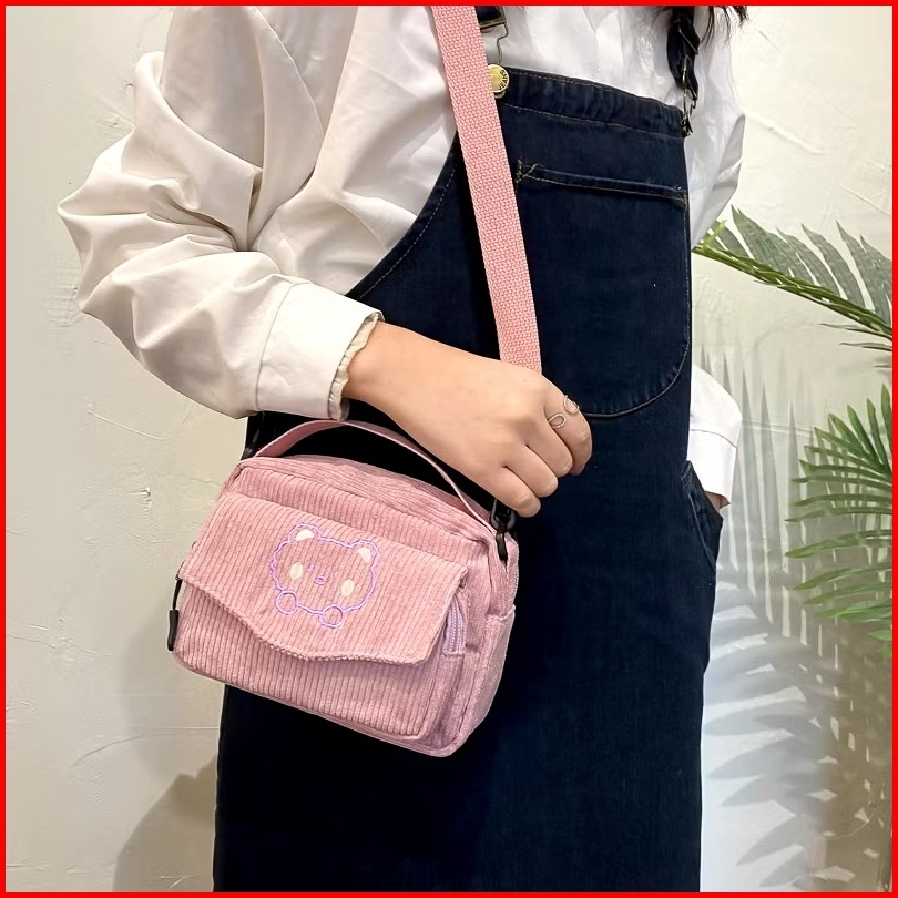Tas Selempang Bahu Wanita Korean Look Cute Corduroy Sling Bag Perempuan Slingbag Bahu Tas Tangan Vintage
