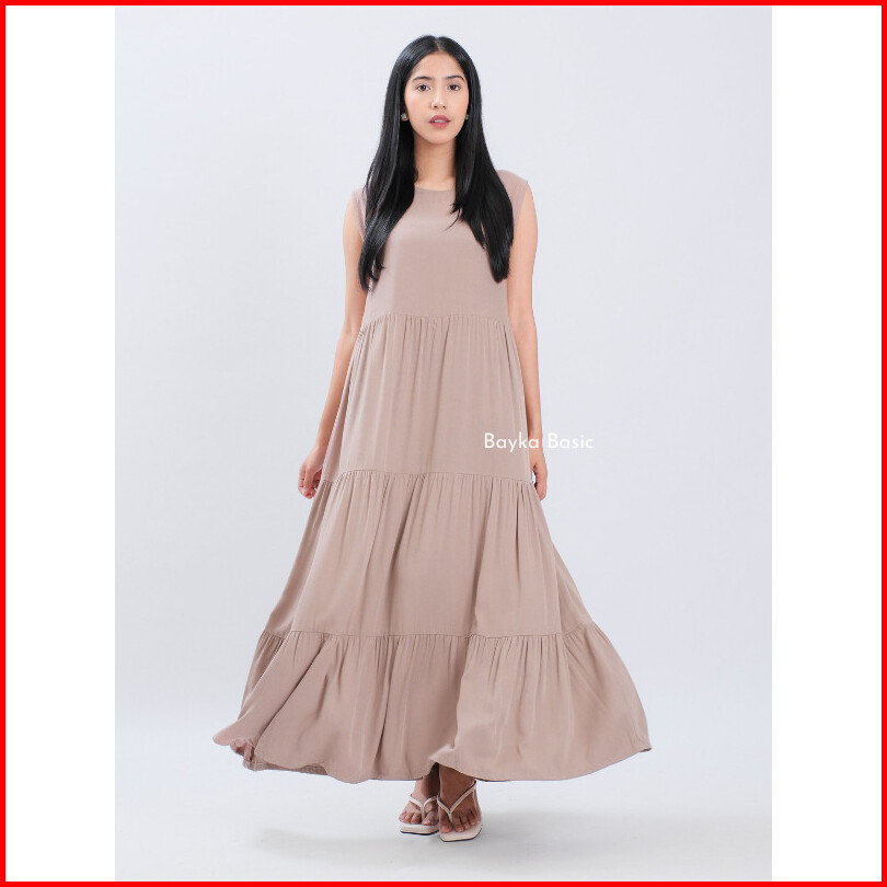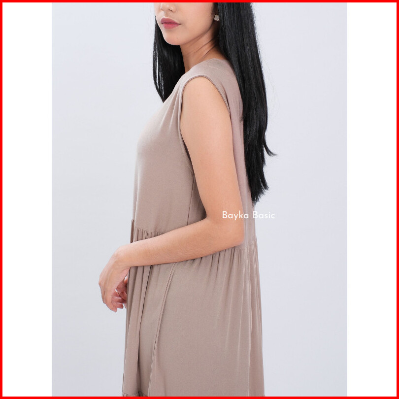 Bayka - Inner Dress Panjang 140 Cm Busui Non Busui Rayon Tanpa Lengan Ruffle Maxi Dn317
