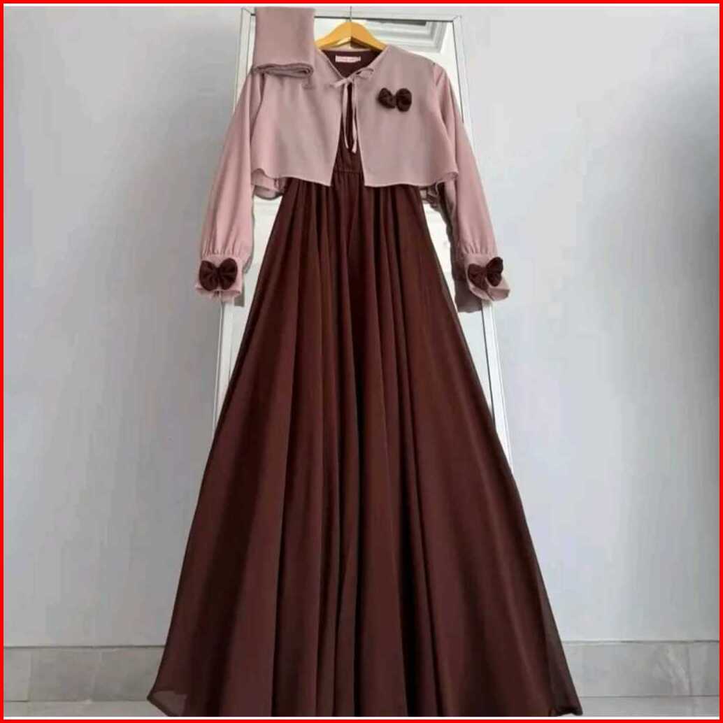Falisha Dress Gamis Rompi Terbaru Masah Kinih Bahan Ceruty Baby Doll Mix Pita Setelan Gamis Masah Kinih