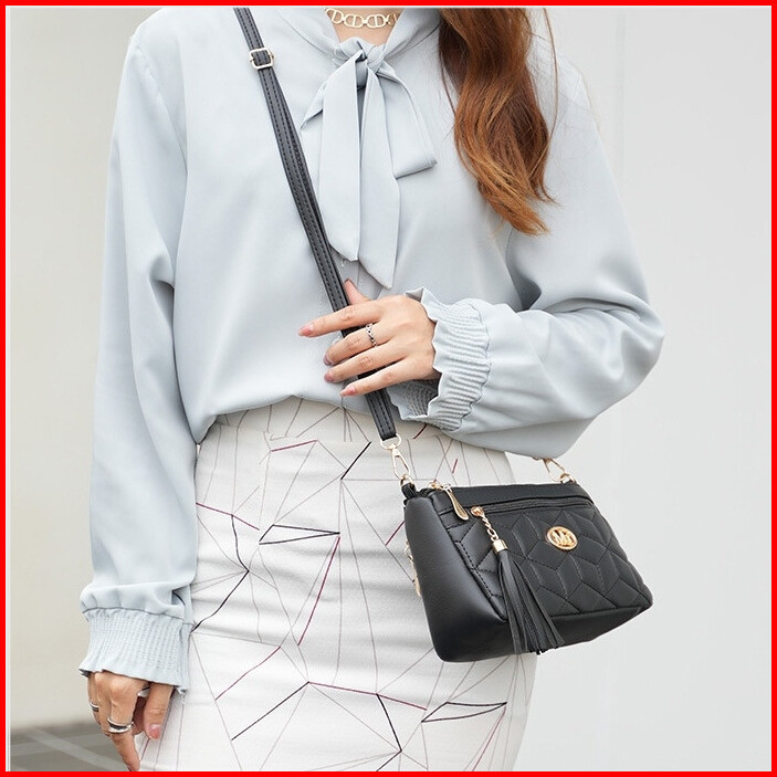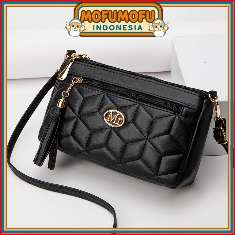 Tas Selempang Wanita Hitam Bahu Remaja Cewek Murah Fashion Branded Terbaru Casual Ambergia Ta869b5 Premium Shoulder Slin