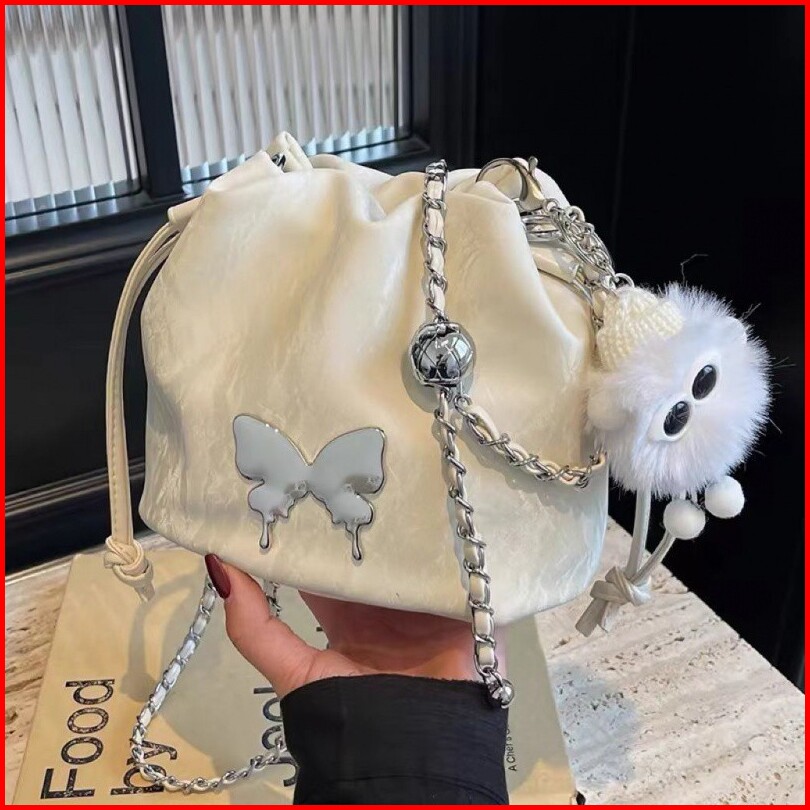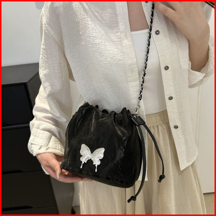 Tas Bucket Kupu-kupu Tas Rantai Selempang Tas Ember Sling Bag Fashion Tas Bahu Shoulder Bag