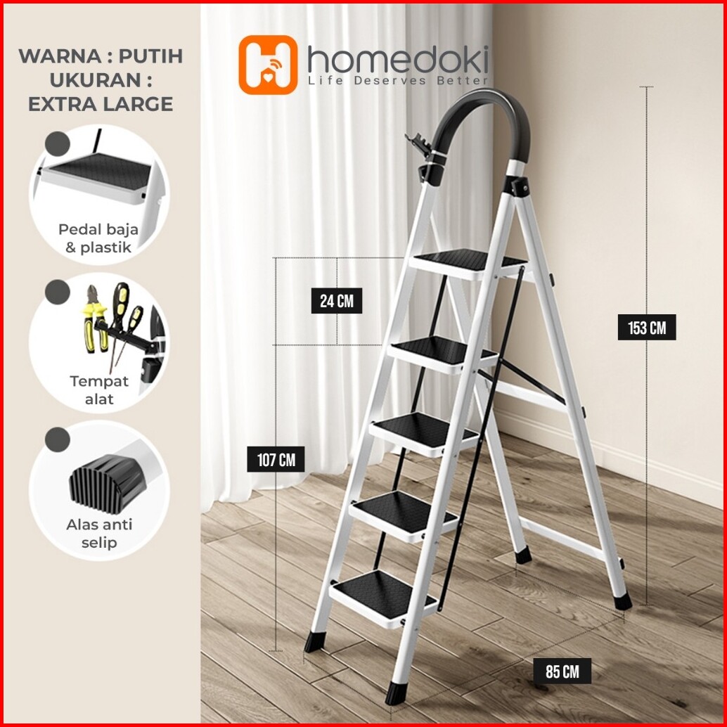 Homedoki Tangga Rumah Lipat Tangga Besi Lipat 3 4 Step Household Steel Ladder Tangga Lipat Aluminium 4 Step Premium Ladd