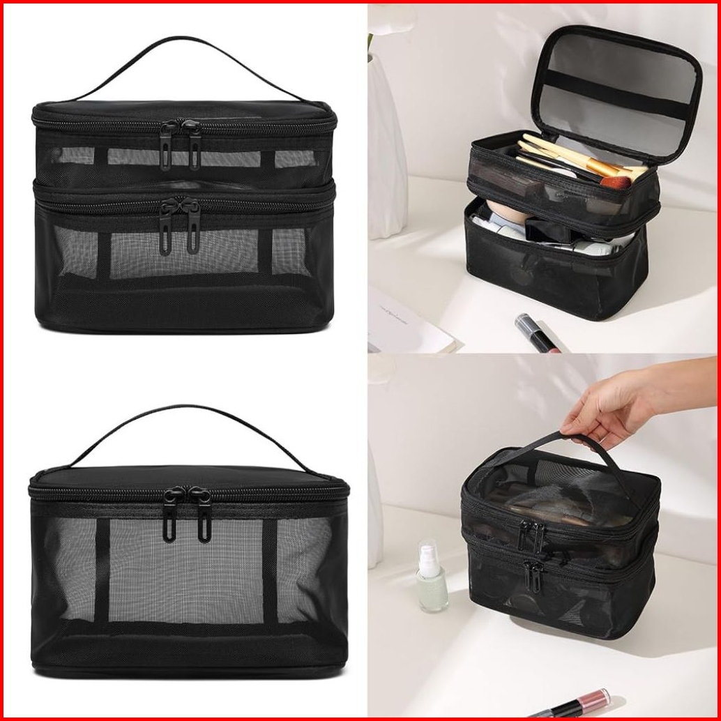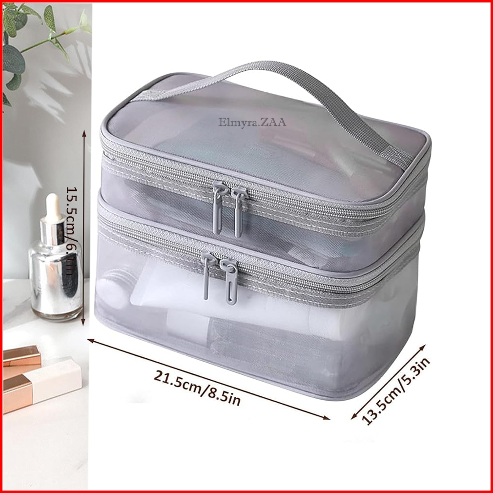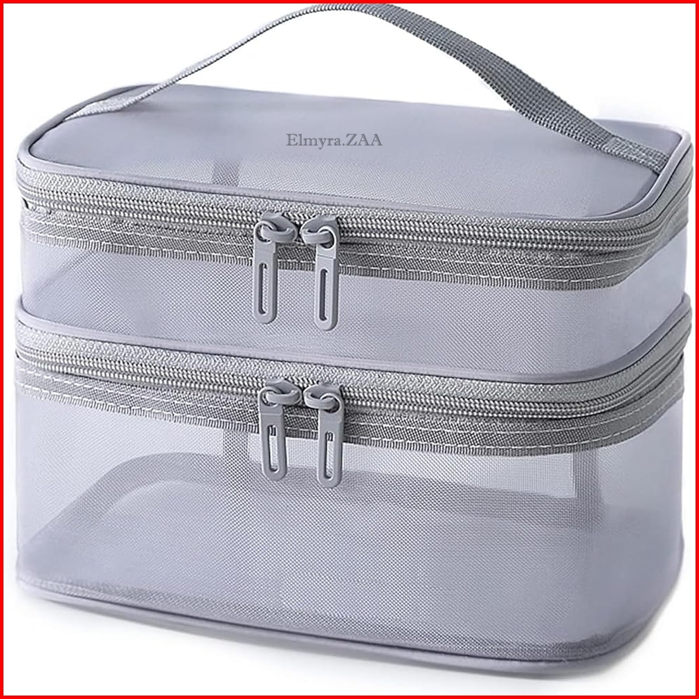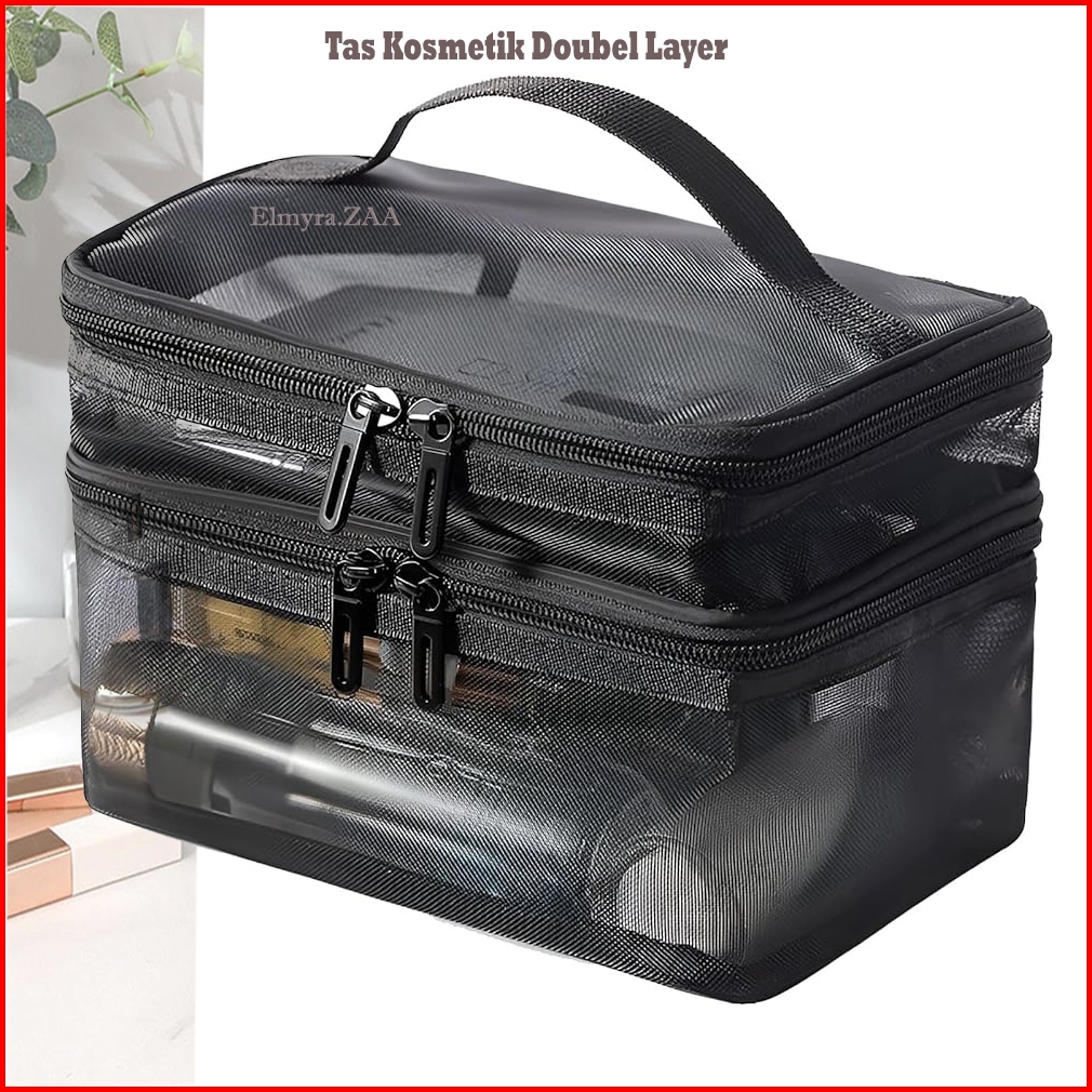 Tas Kosmetik Pouch Make Up Mesh Jaring Hitam Tansparan Bahan Polyester Pasir Travel Bag Organizer
