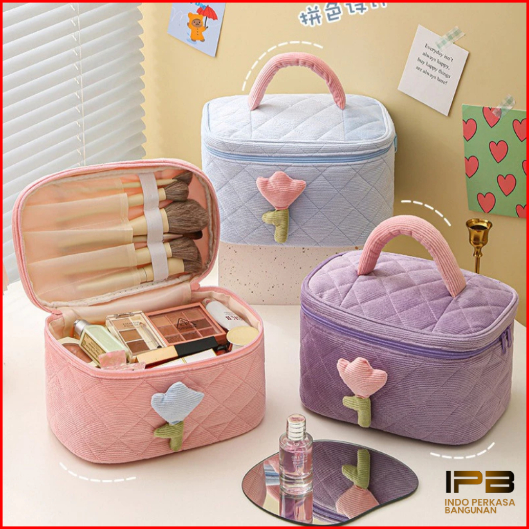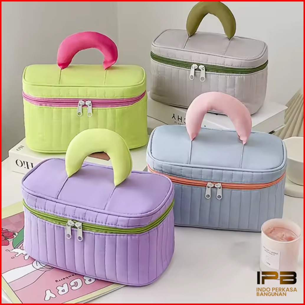 Pouch Kosmetik Tebal Quilted Travel Bag Tempat Makeup Skincare Organizer Lucu