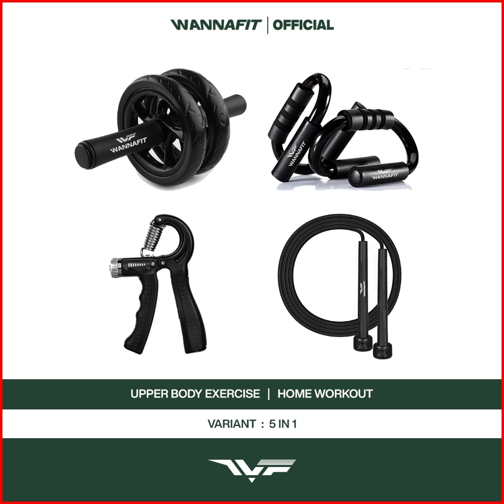 Wannafit Paket 5 In 1 Handgrip Ab Wheel Push Up Bar Skipping Alat Olahraga Rumah