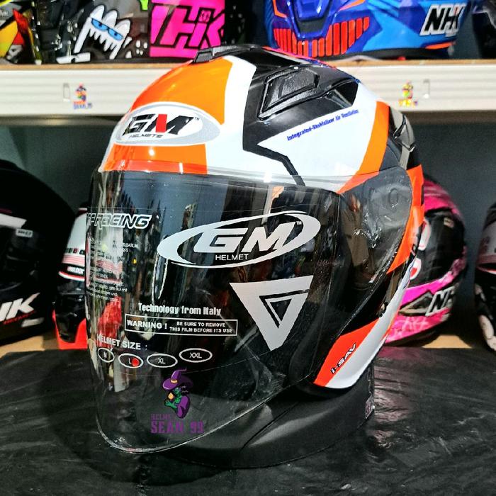 HELM GM KING FIGHTER KAZUKI BLACK ORANGE VISOR LIGHT SMOKE HALF FACE ORIGINAL SNI - HELM ORIGINAL, M