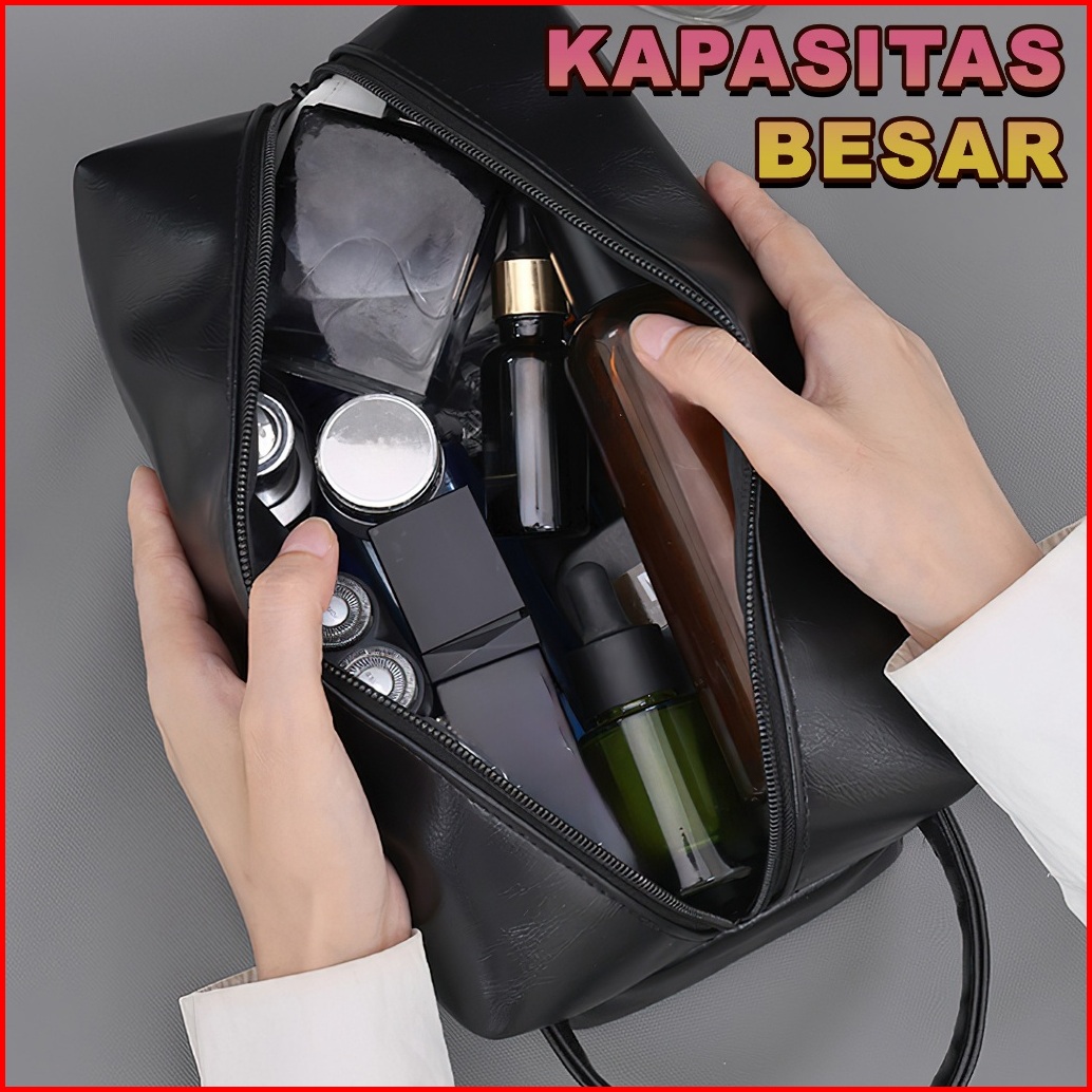 Tas Kosmetik Pria Travel Pouch Make Up Travel Tas Kosmetik Multifungsi Kulit Sintetis Tebal Bk6024