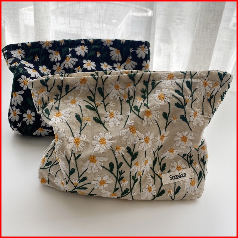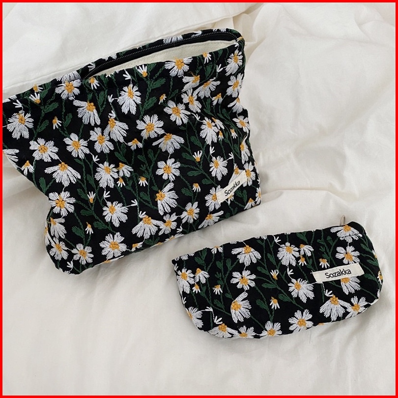Tas Kosmetik Bunga Daisy Pouch Travel Fashion Korea Cantik Aesthetic Dompet Kunci Serbaguna Multifungsi Premium Berkuali