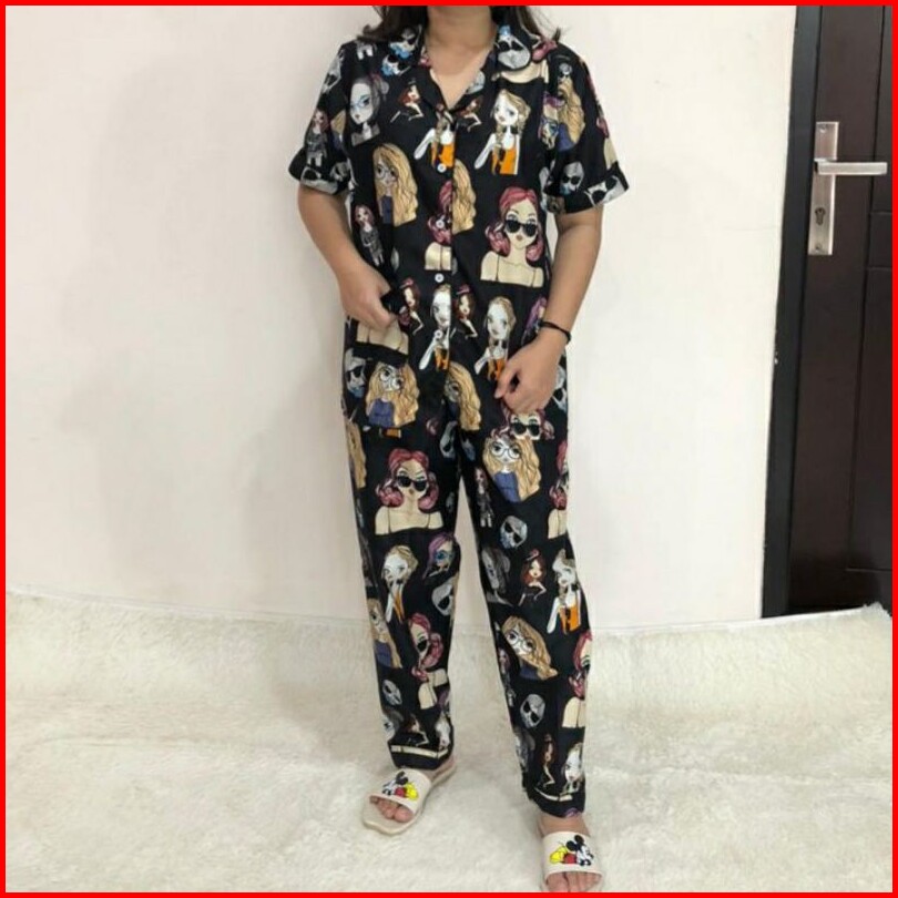 Piyama Premium Tangan Pendek Dewasa Besar Cp Celana Panjang Karakter Motif Katun Jepang Busui