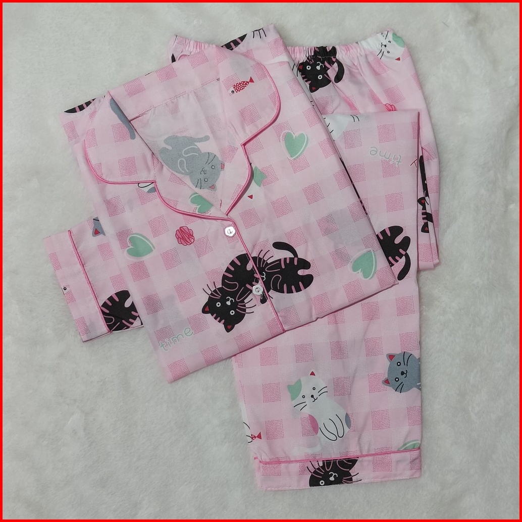 Bj - Piyama Pp Wanita Motif Karakter - Setelan Baju Tidur Cewe Lengan Panjang - Bahan Katun