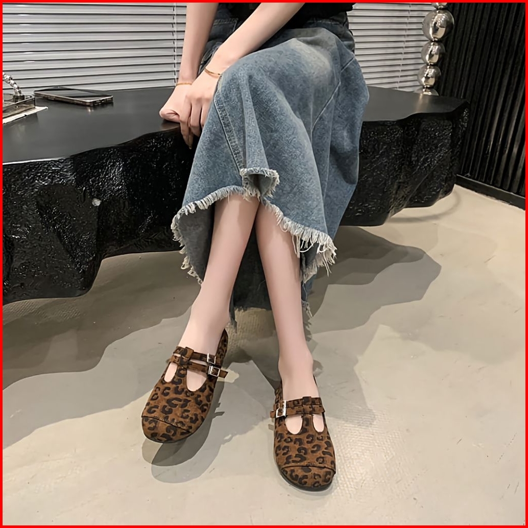 Nf1628 - Sepatu Flat Fashion Wanita Kekinian Sepatu Tali 2gesper Model Korea Style Kekinian