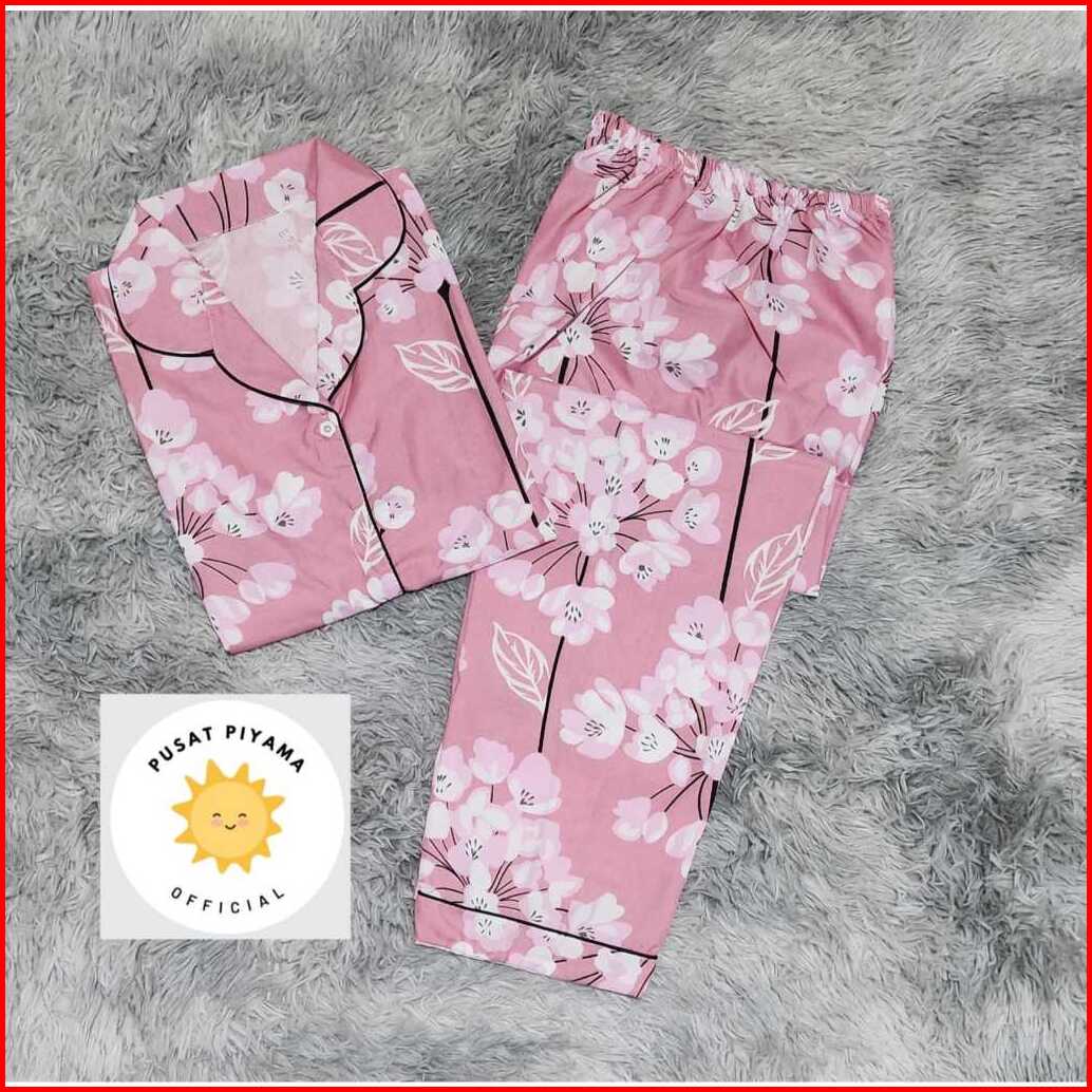 Piyama Baju Tidur Wanita Dewasa Motif Bunga Setelan Cewek Lengan Pendek