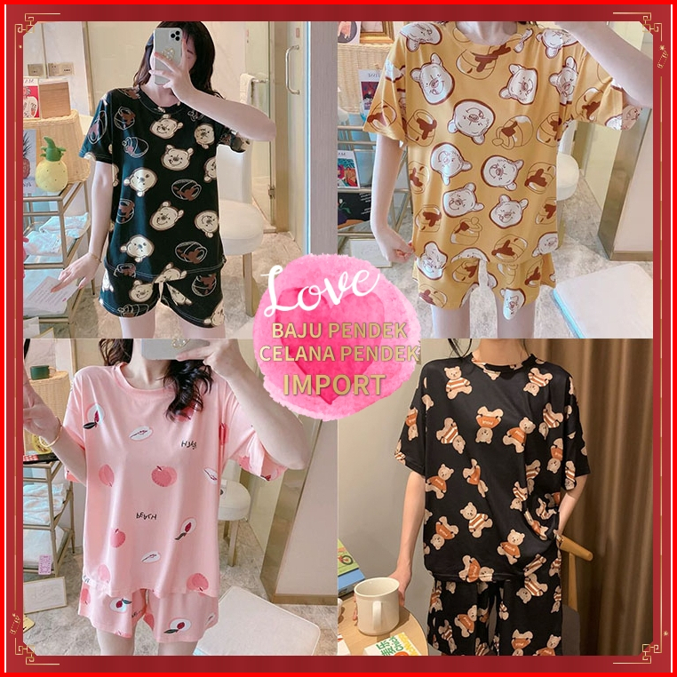 Set Piyama Setelan Baju Tidur Wanita Oversize Bahan Kaos Lengan Pendek Dewasa Motif Karakter Kartun - Piyama Wanita Moti