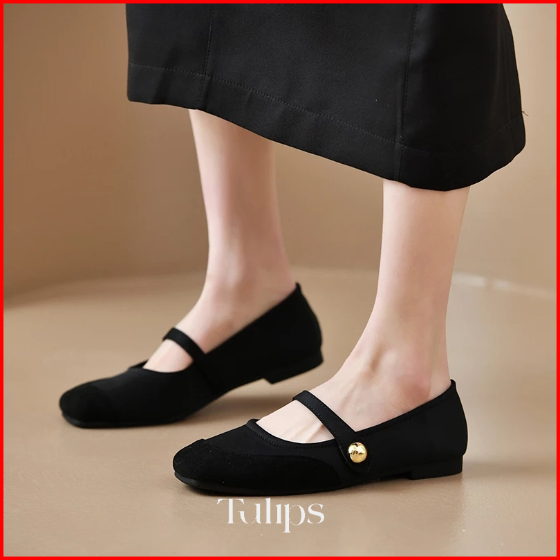 Tulips - Sepatu Wanita Flatshoes Mules Ballerina Dengan Tali Import Korean Style Import 0106