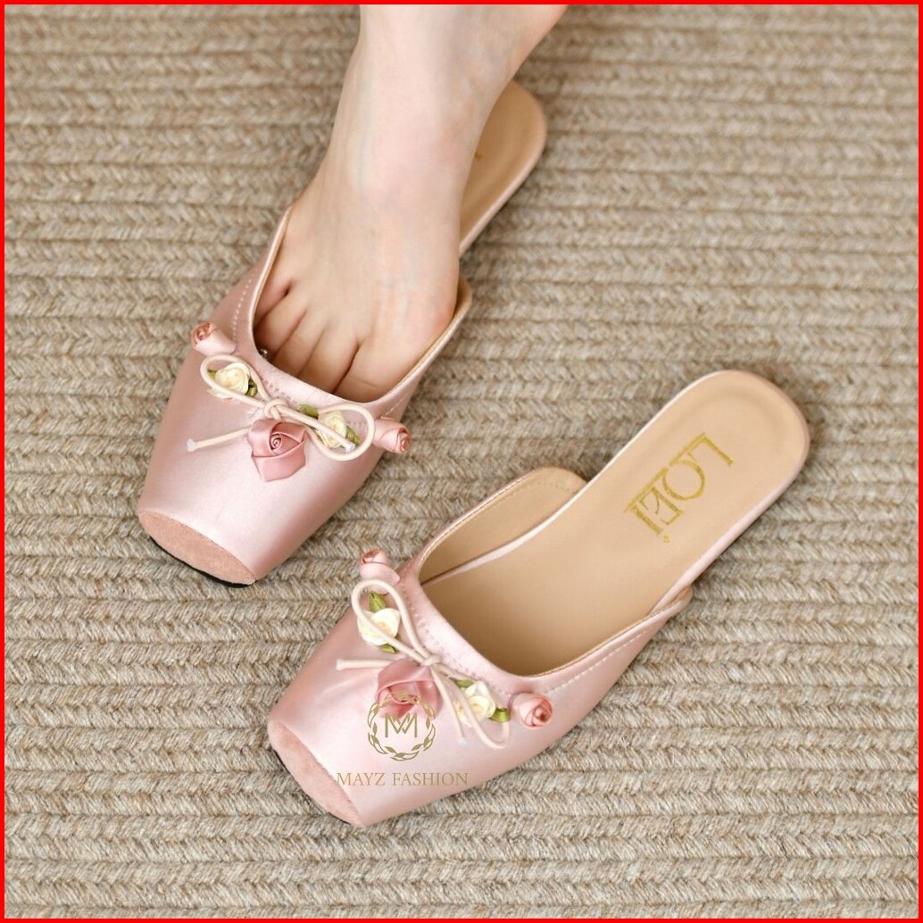 Sepatu Flat Shoes Flowery Satin Elegan Wanita 1004