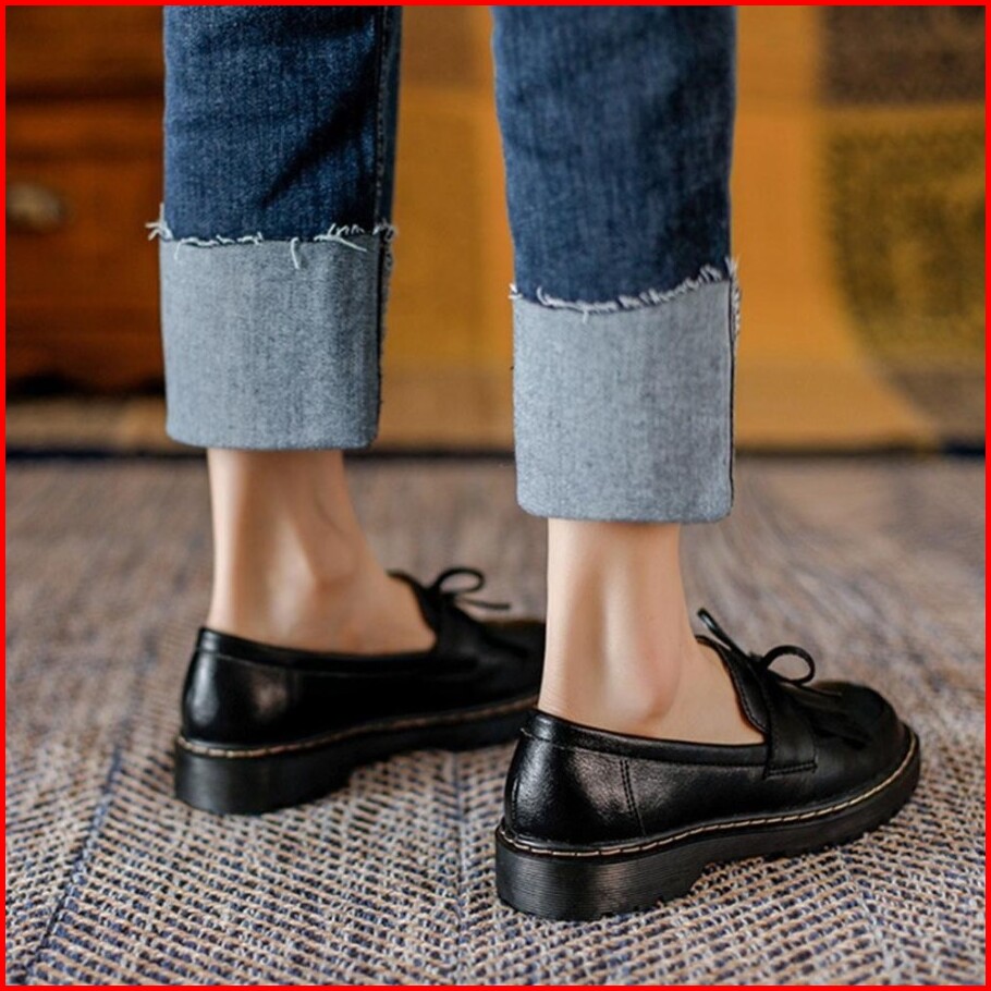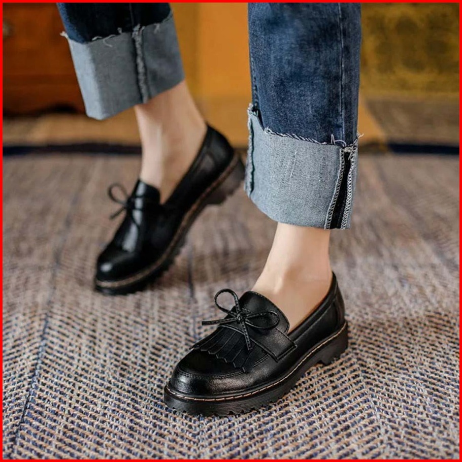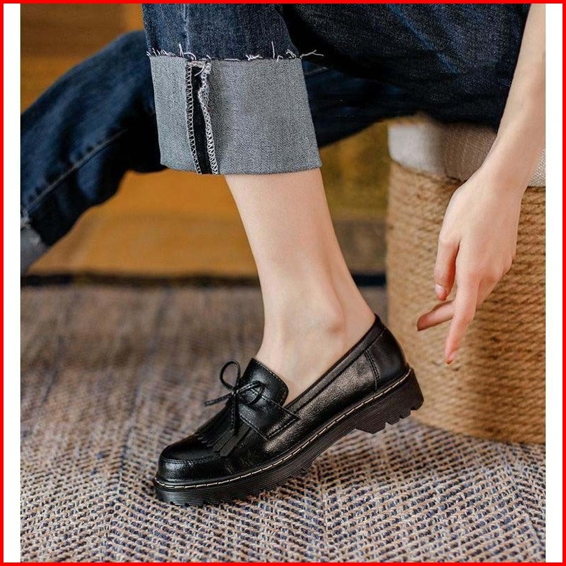 Alona-405 Loafer Black Sepatu Docmart Wanita Sapatu Dokmart Loafers Kulit Hitam
