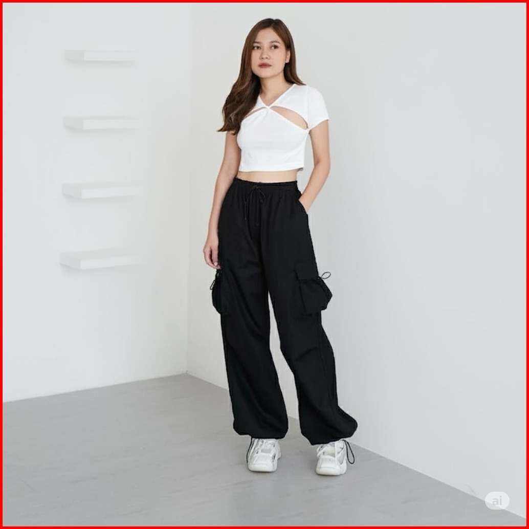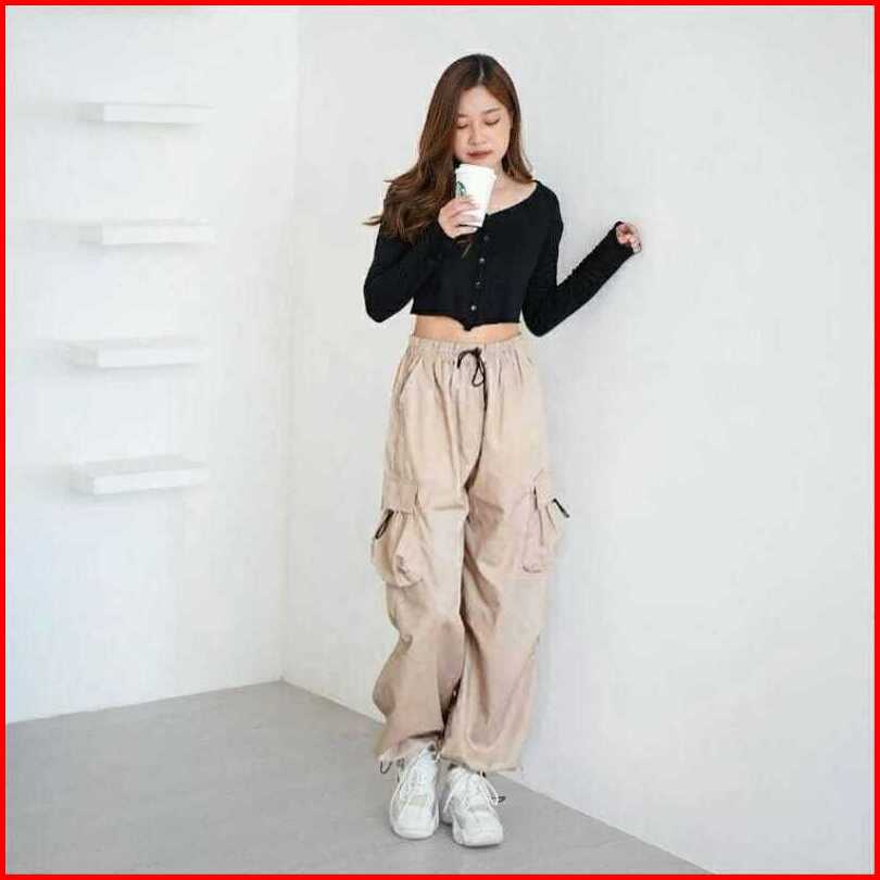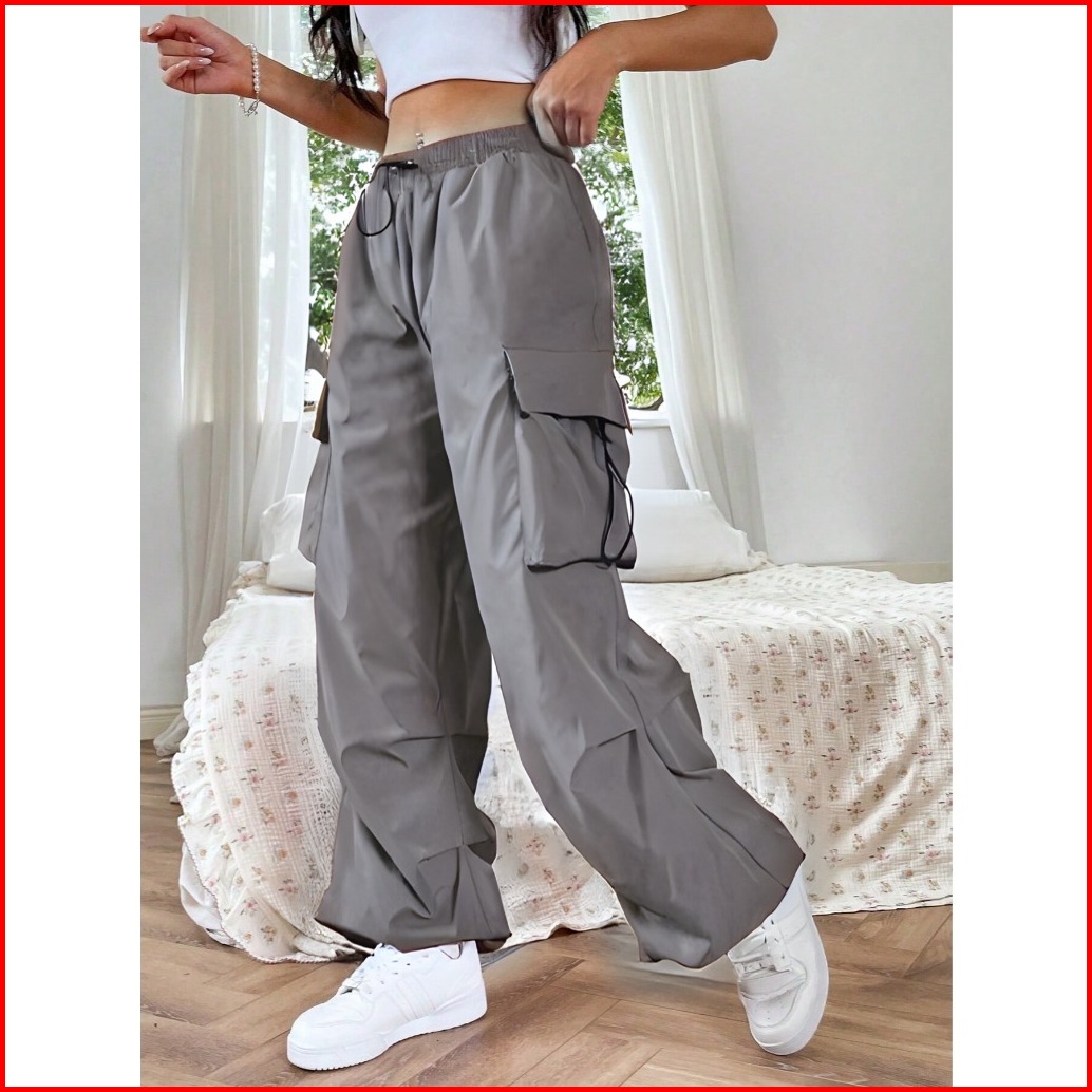 Sheilovee - Cargo Pants Wanita Highwaist Loose Korean Style Standar Jumbo Celana Cargo Wanita Kiya Cargo Serut