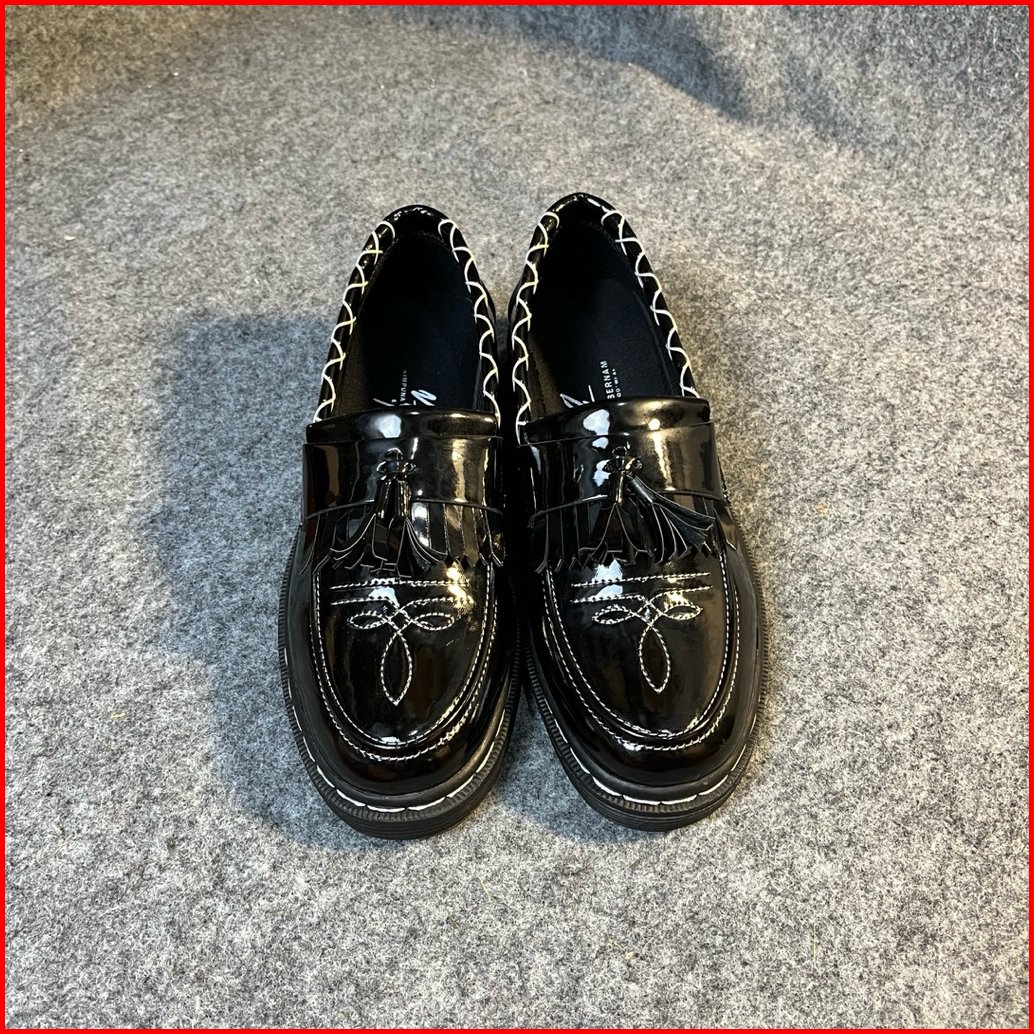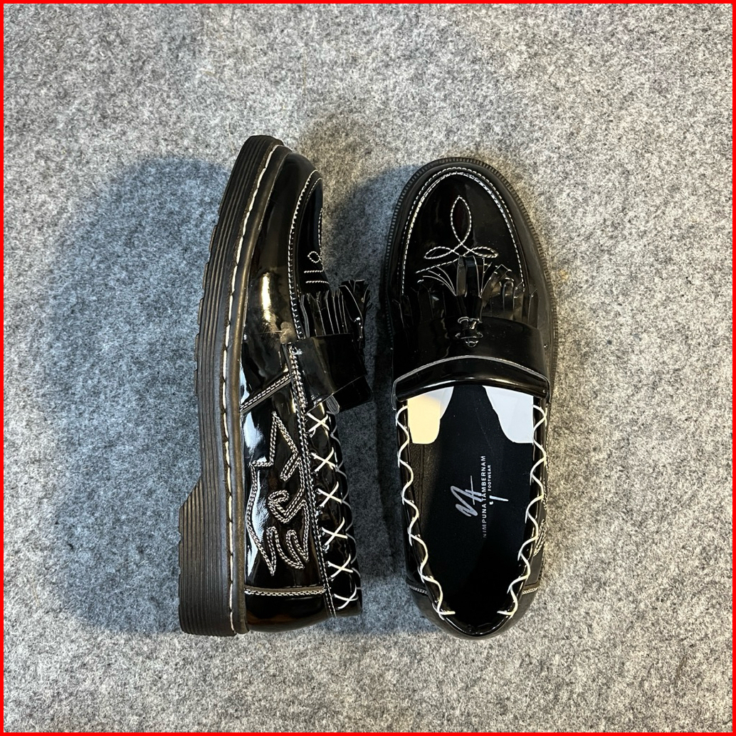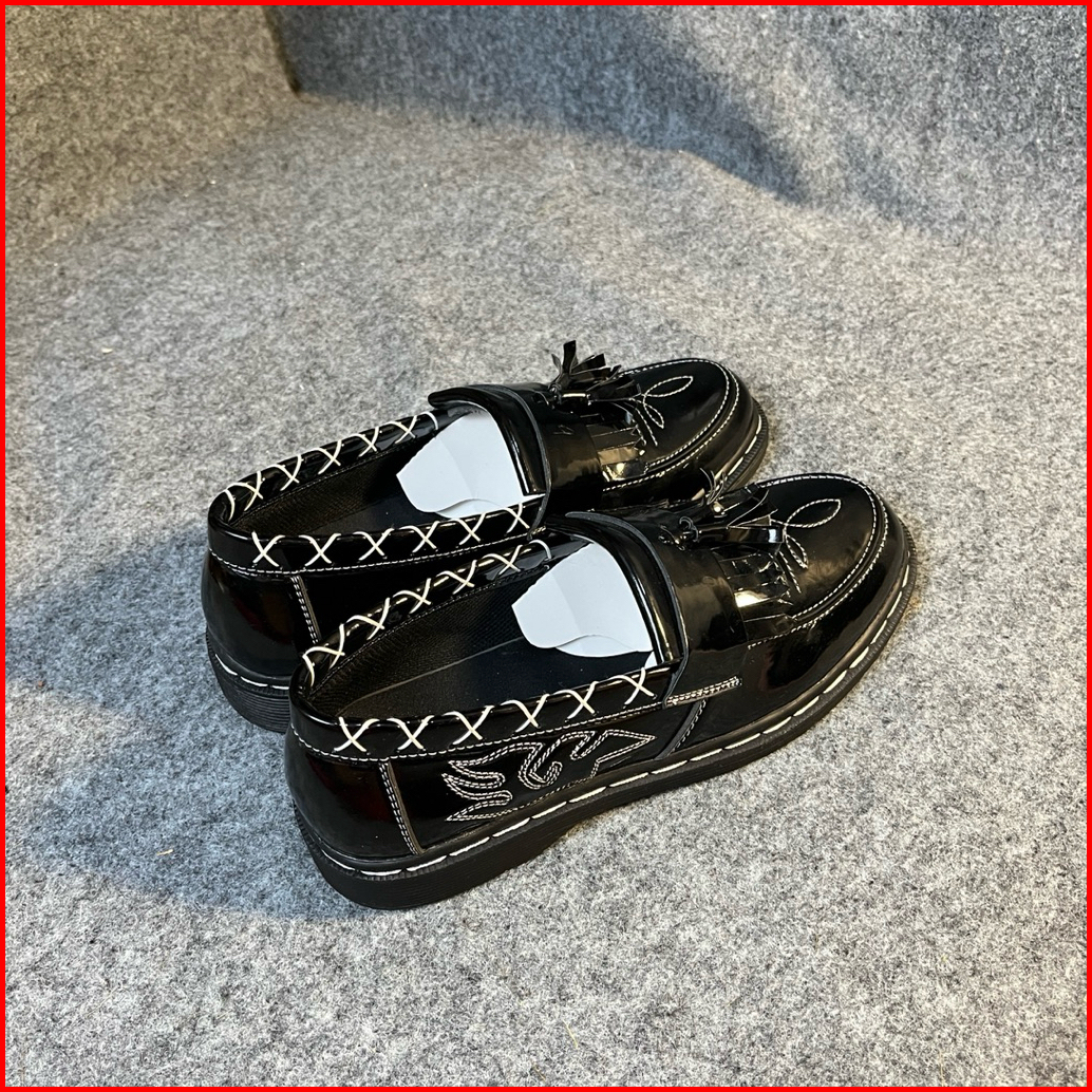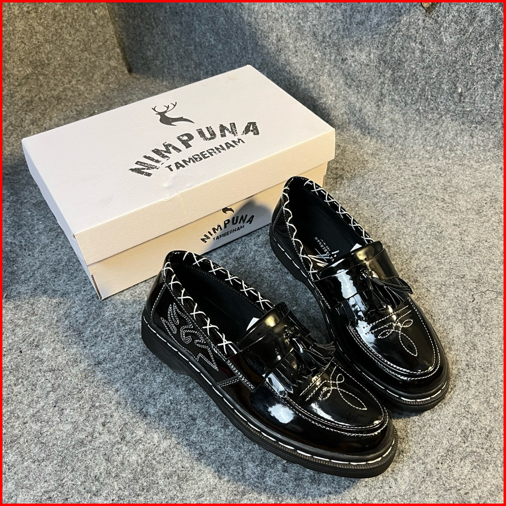 Sepatu Docmart Formal Penny Loafers Hitam Glossy Motif Pria