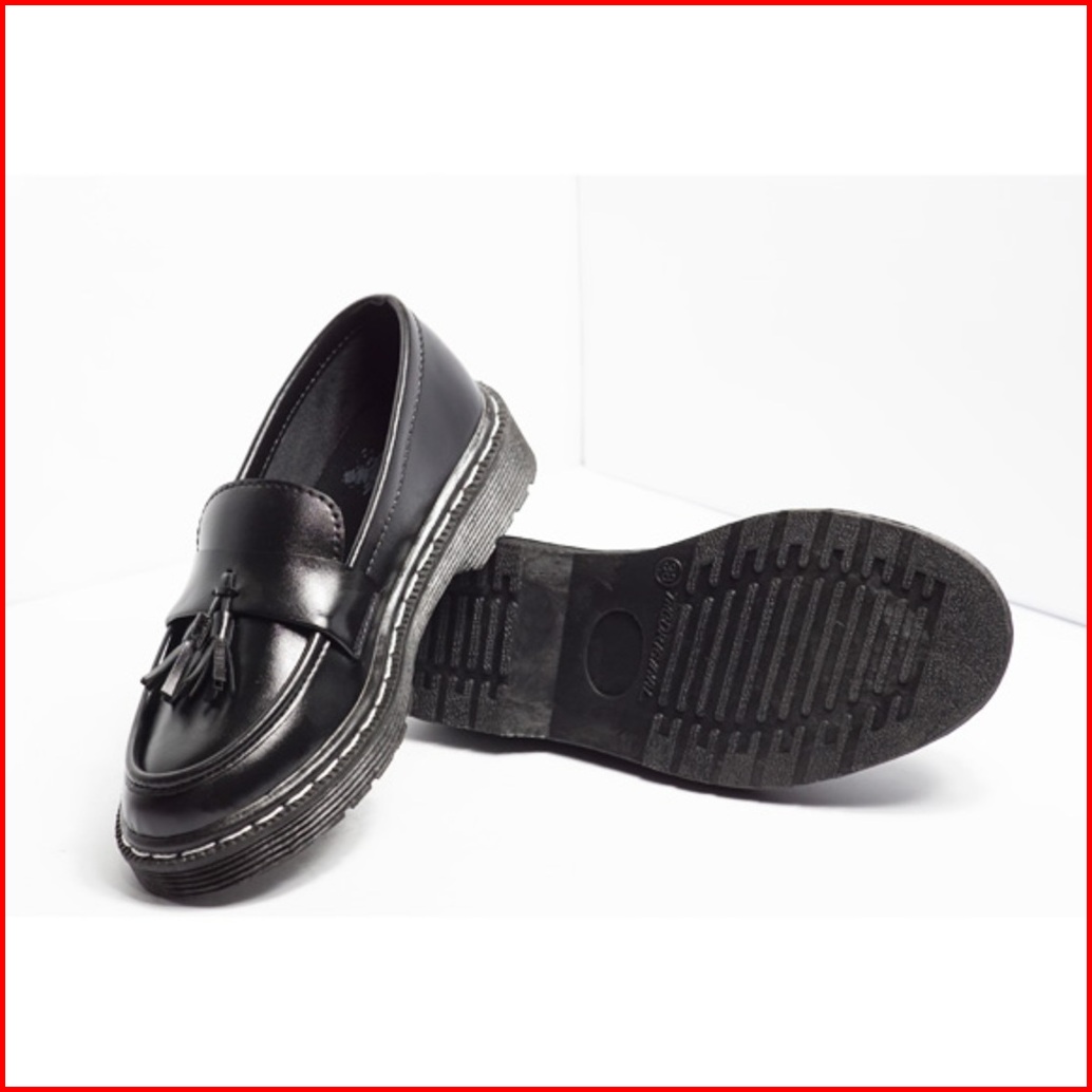 Sepatu Loafers Tassel Wanita Autsole Kaca Dan Hitam Flat Lis Hitam Kuning Putih Eu 36-44