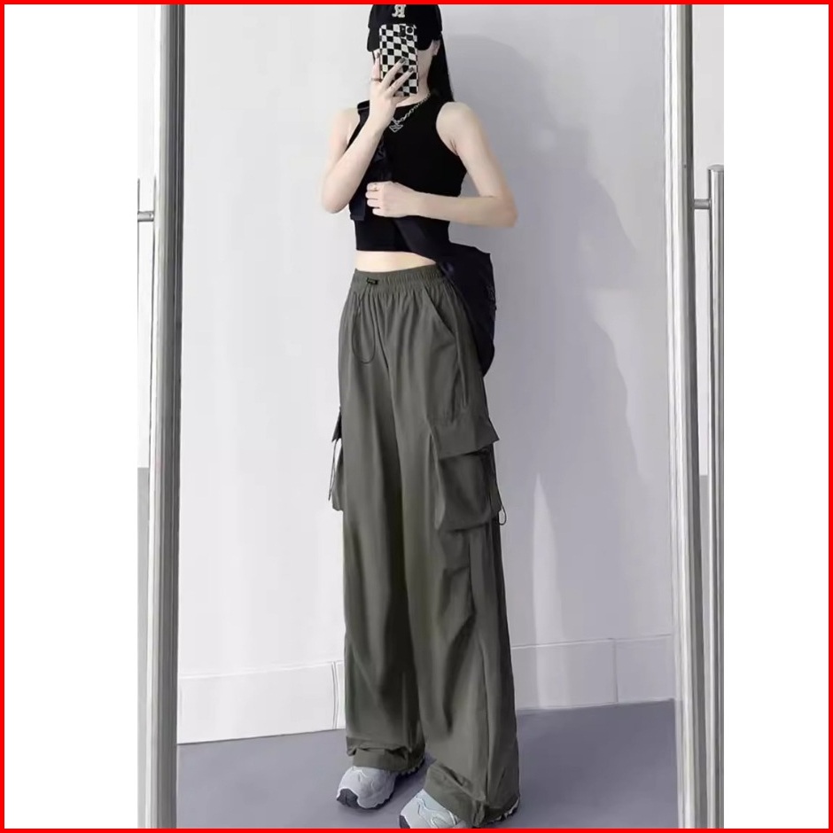 Cargo Celana Panjang Kekinian Korean Fashion New Kasual Highwaist Loose Cargo Celana