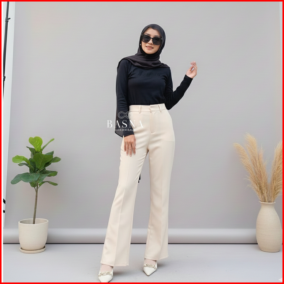 Celana Kantor Cutbray Highwaist Pants - Kylie Cutbray Pants Wanita - Celana Anti Kusut By Basna