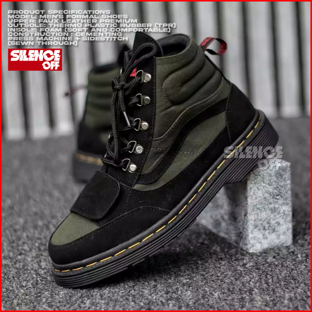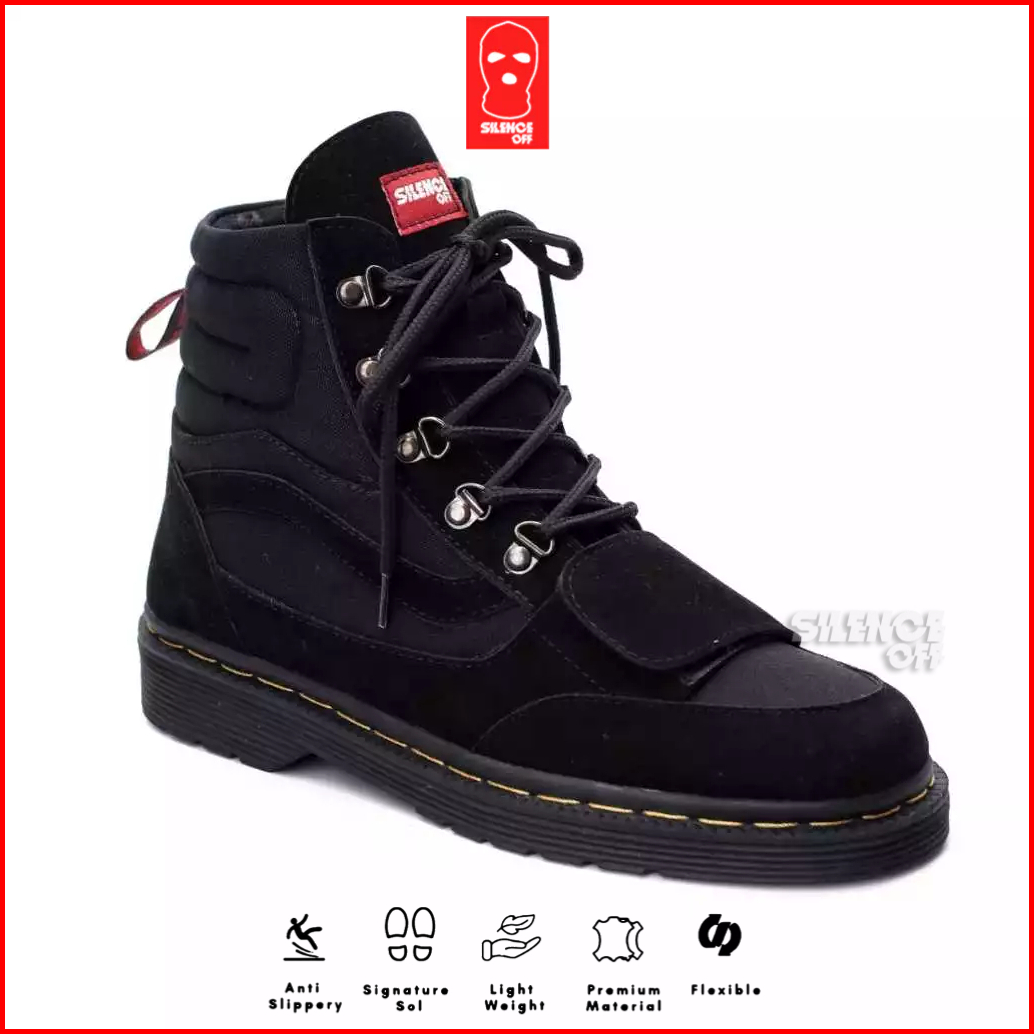 Sepatu Pantofel Boots Docmart Hitam Pria Silence Off - Kubo Leopard