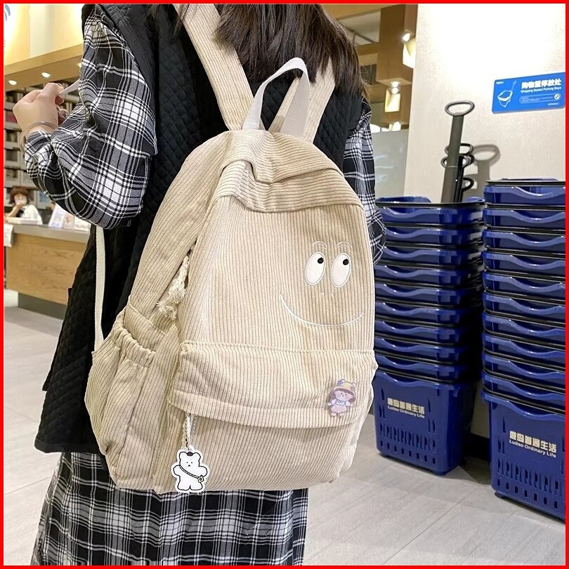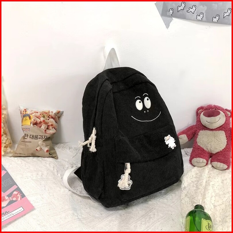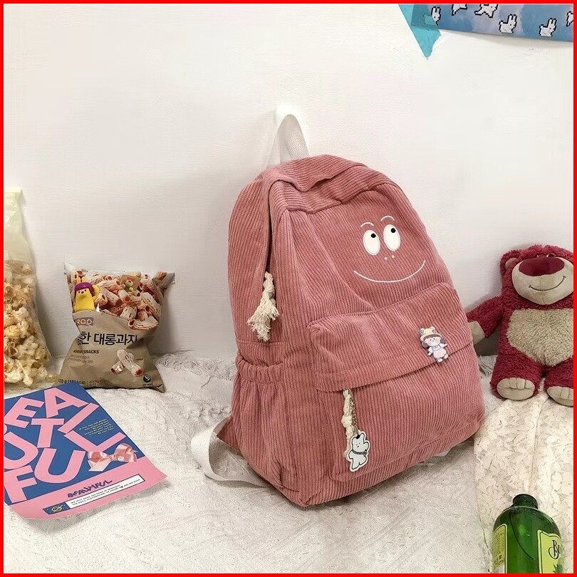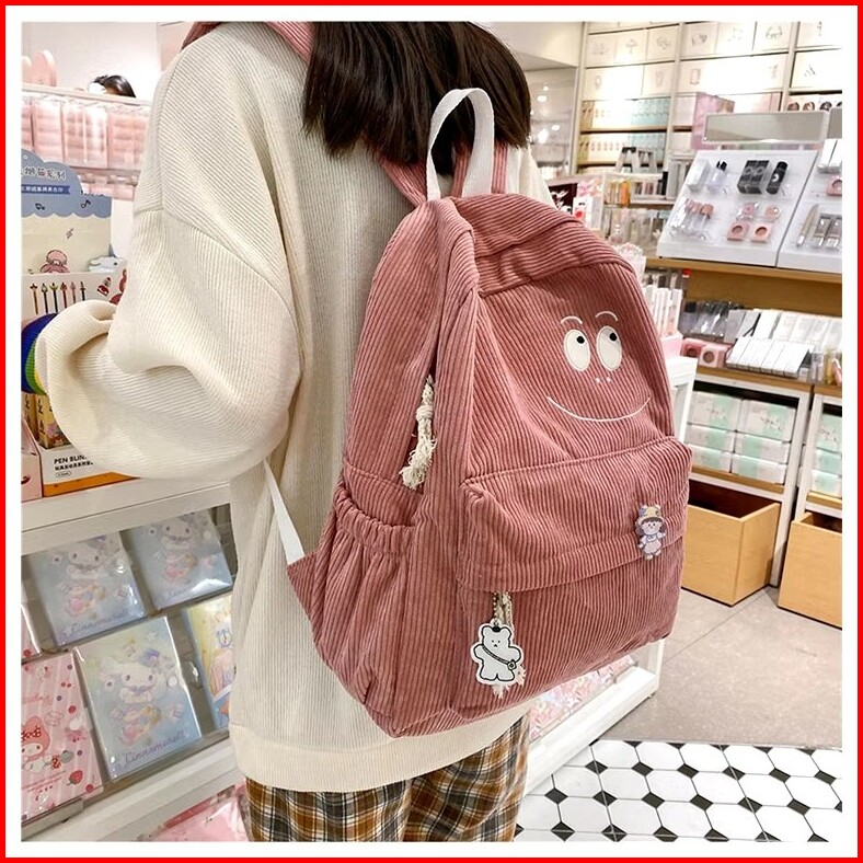 Tas Ransel Wanita Corduroy Muka Senyum Tas Sekolah Cewe Smiley Face Backpack Korduroi Perempuan Korean Style