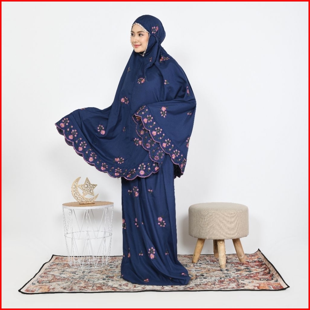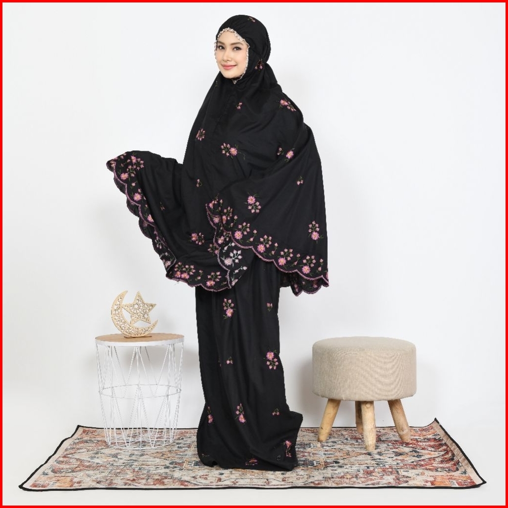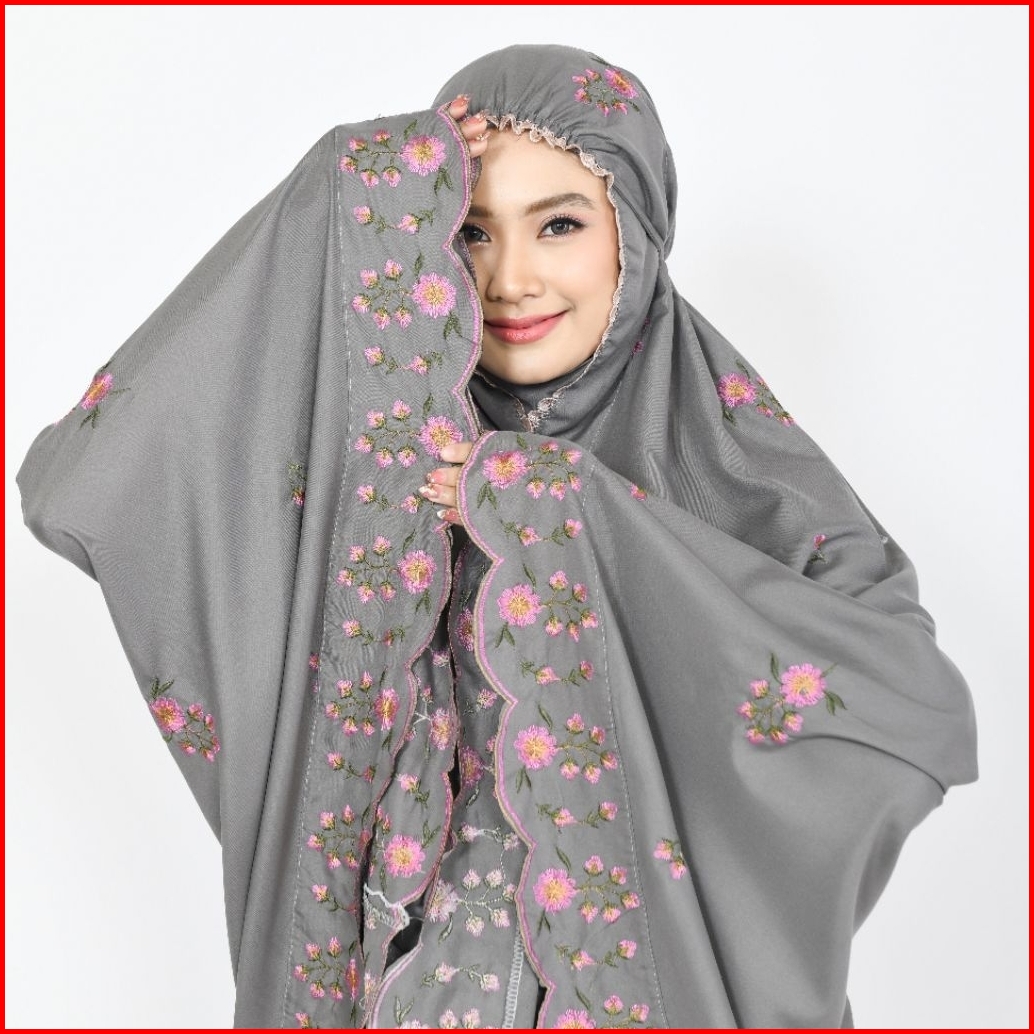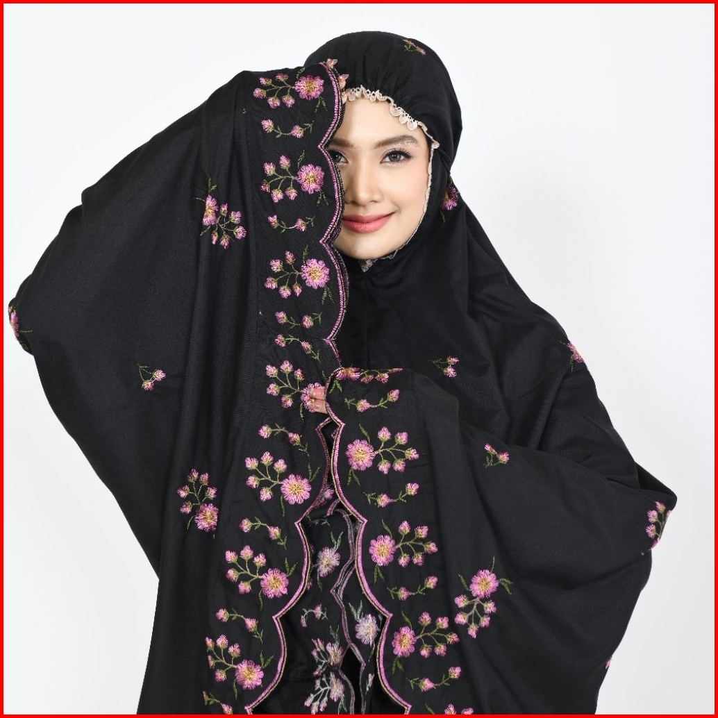 Hasnashop - Mukena Dewasa Katun Premium Motif Bordir Bunga Rose Terbaru All Size Jumbo