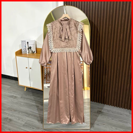 Dress Muslimah Loli Wanita Model Rompi Tille Bordir Dengan Leher Pita Dan Lengan Karet Fit
