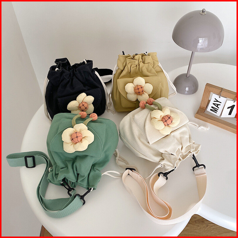 Bao156 Tas Selempang Wanita Korean Flower Tali Serut Sling Bag Perempuan Casual Trendy
