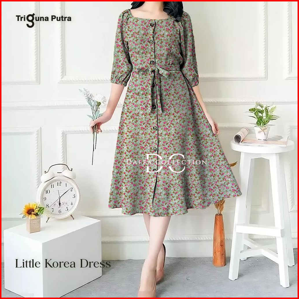 Dress Pesta Dress Square Neck Kondangan Pesta Formal Import Korean Style Dress Full Kancing