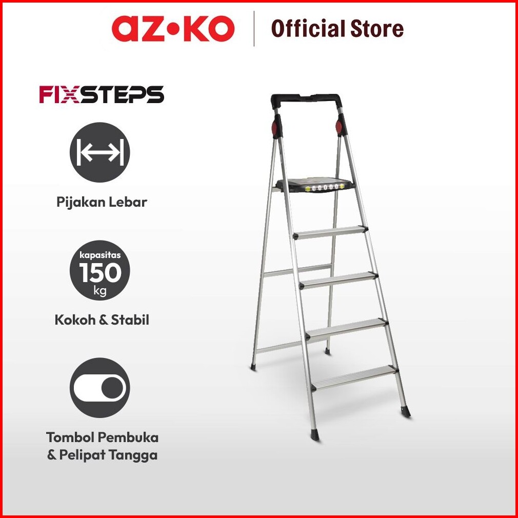 Azko Fixsteps Tangga Aluminium American Type 5 Step Multifunction Household Ladder Peralatan Rumah Tangga Buka Tutup Fol