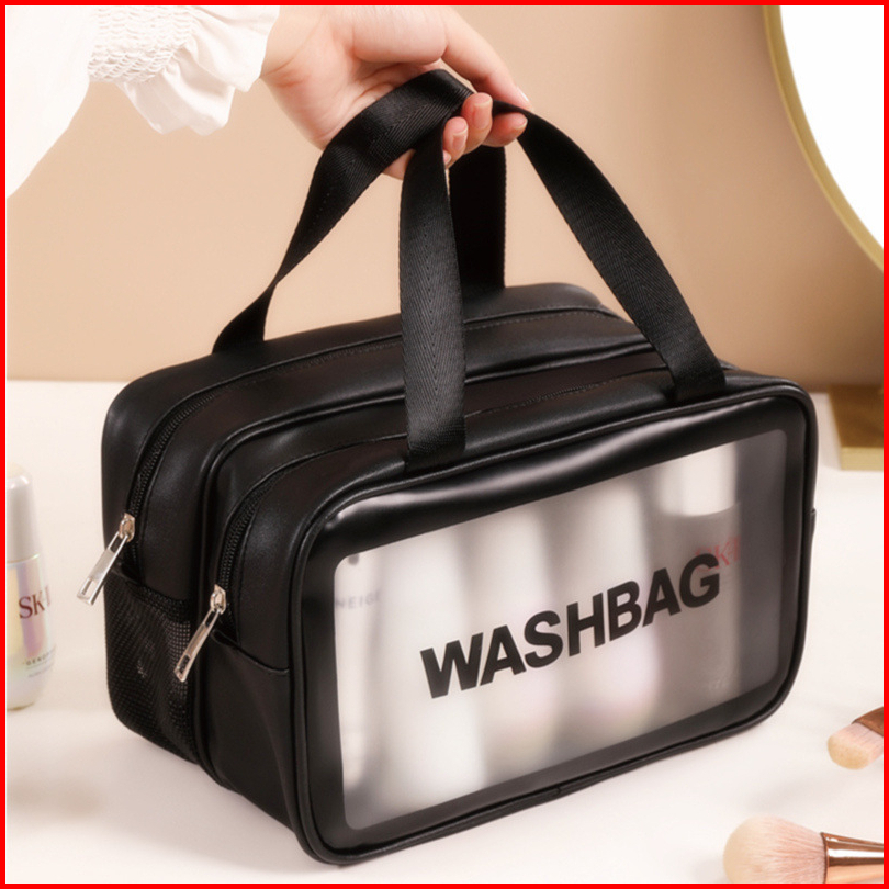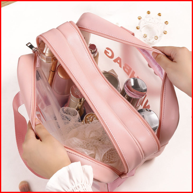 Yohoid Tas Kosmetik Portable Double Layer Tas Peralatan Mandi Pouch Organizer Sorage Box Travel Waterproof Transparent C