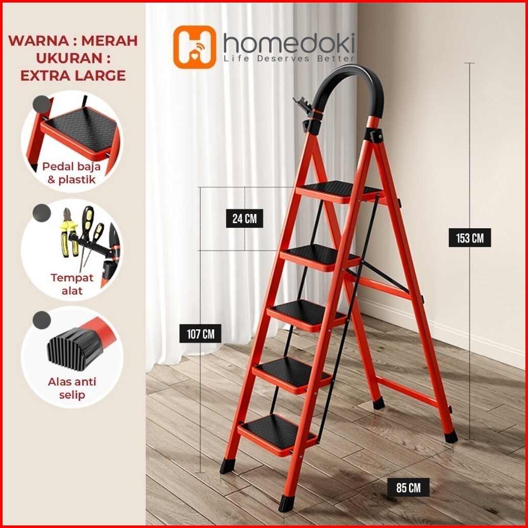 Homedoki Tangga Rumah Lipat Tangga Besi Lipat 3 4 Step Household Steel Ladder Tangga Lipat Aluminium 4 Step Premium Ladd