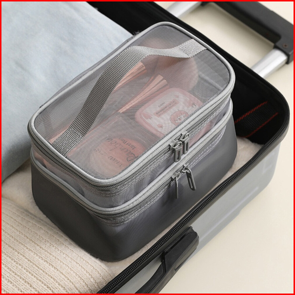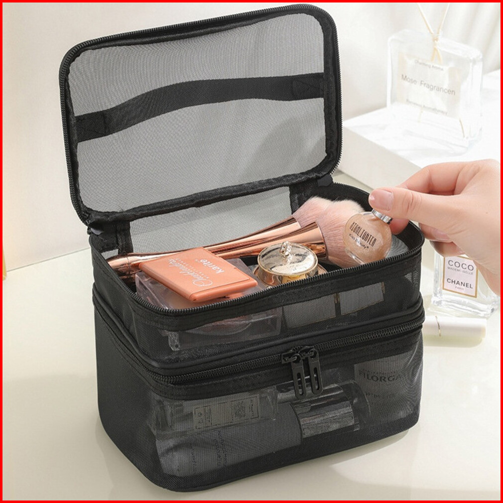 Tempat Alat Baru Transparan Pouch Make Up Travel Tas Koper Mesh Make Up Organizer Pouch Bag Dua Lapisan Tas Kosmetik