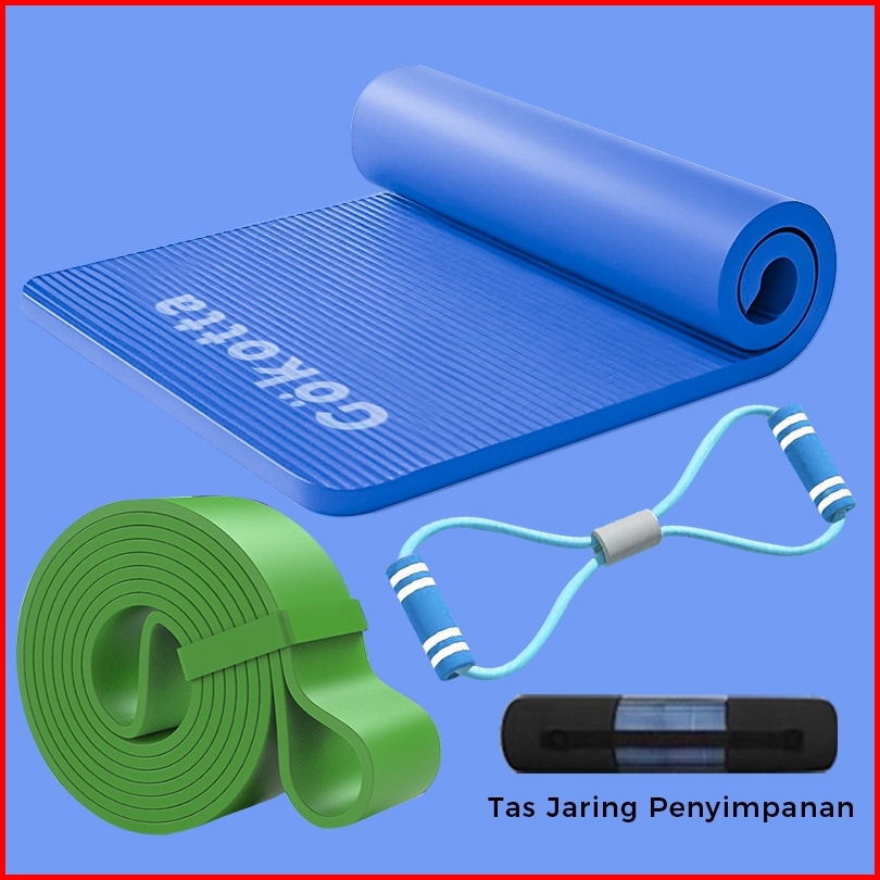 Gokotta Set Matras Lengkap Dengan Tali Yoga Elastis Paket Olahraga Paket Matras Dengan Tali Yoga Dan Resistance Band