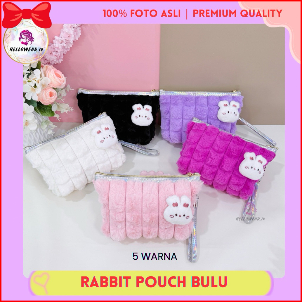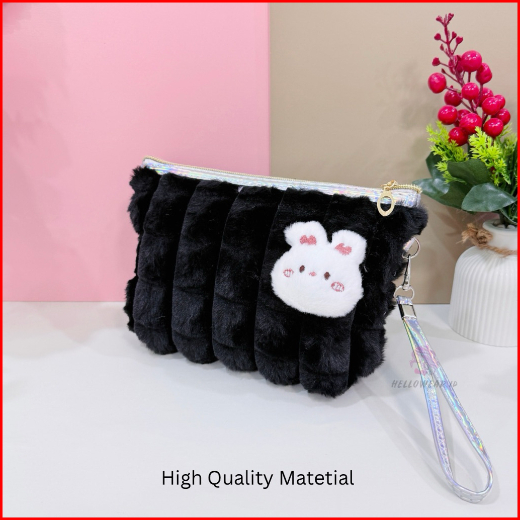 Momiu Rabbit Pouch Makeup Bag Bulu Travel Clutch Serbaguna Lucu Rabbit Kelinci Kawai Tas Mini