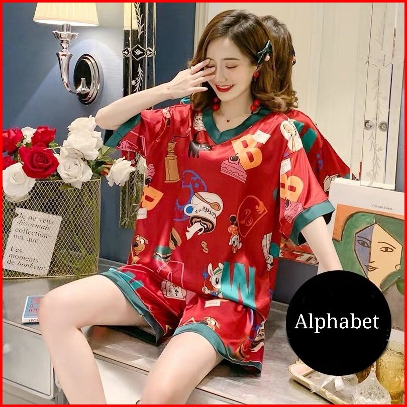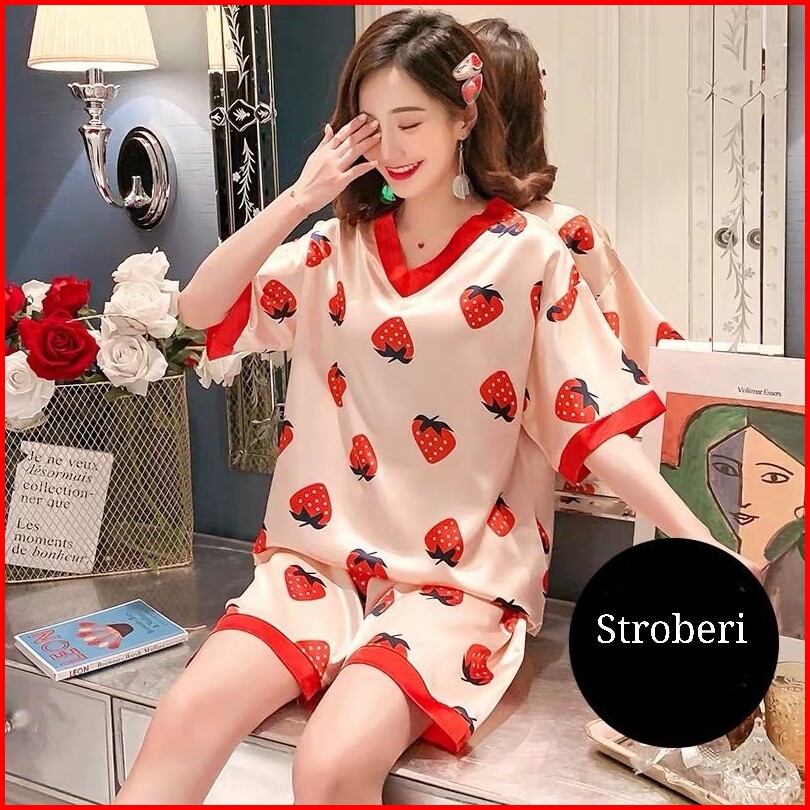 Baju Tidur Dewasa Premium Piyama Wanita Motif Bahan Satin