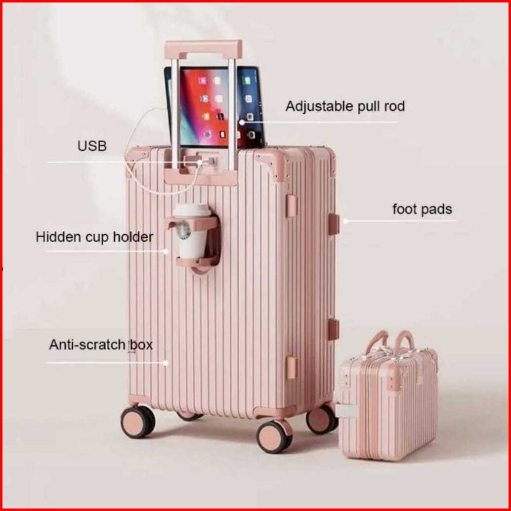 Forgui Koper Mini Wanita 18 Inch Koper Kabin Usb Charger 20 Inch Kapasitas Besar 24 Inch Koper Cup Holder