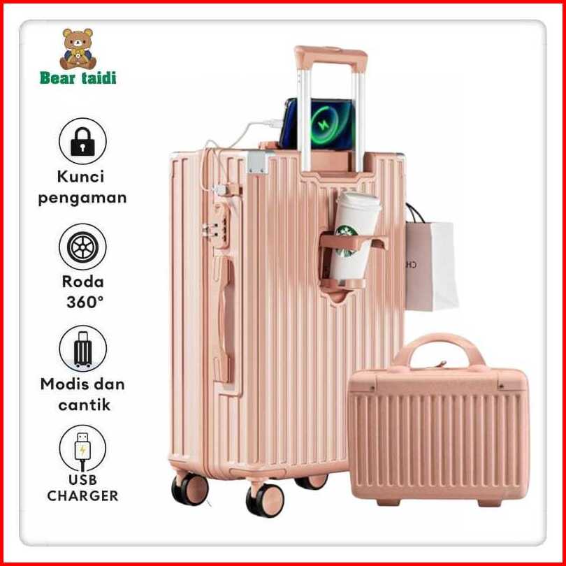 Bear Taidi Koper Kabin Usb Charger Wanita 20 Inch Kapasitas Besa Koper Cup Holder 24 Inch Koper Mini Kata Sandi 18 Inch
