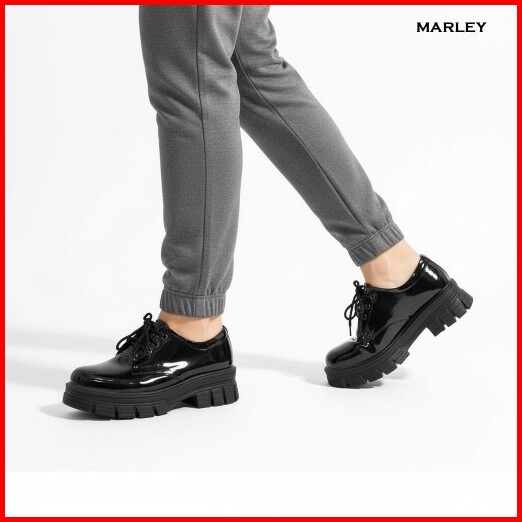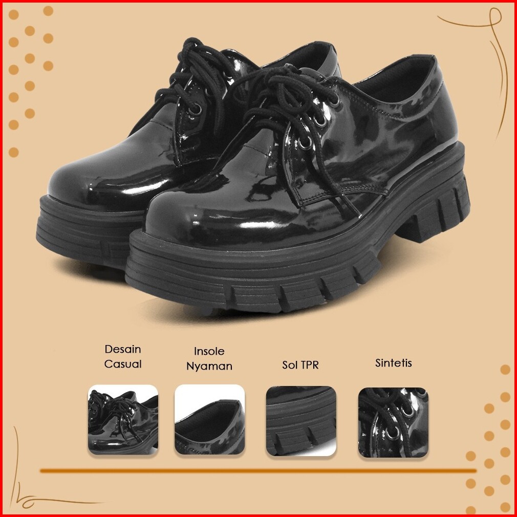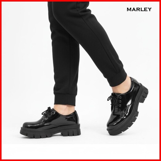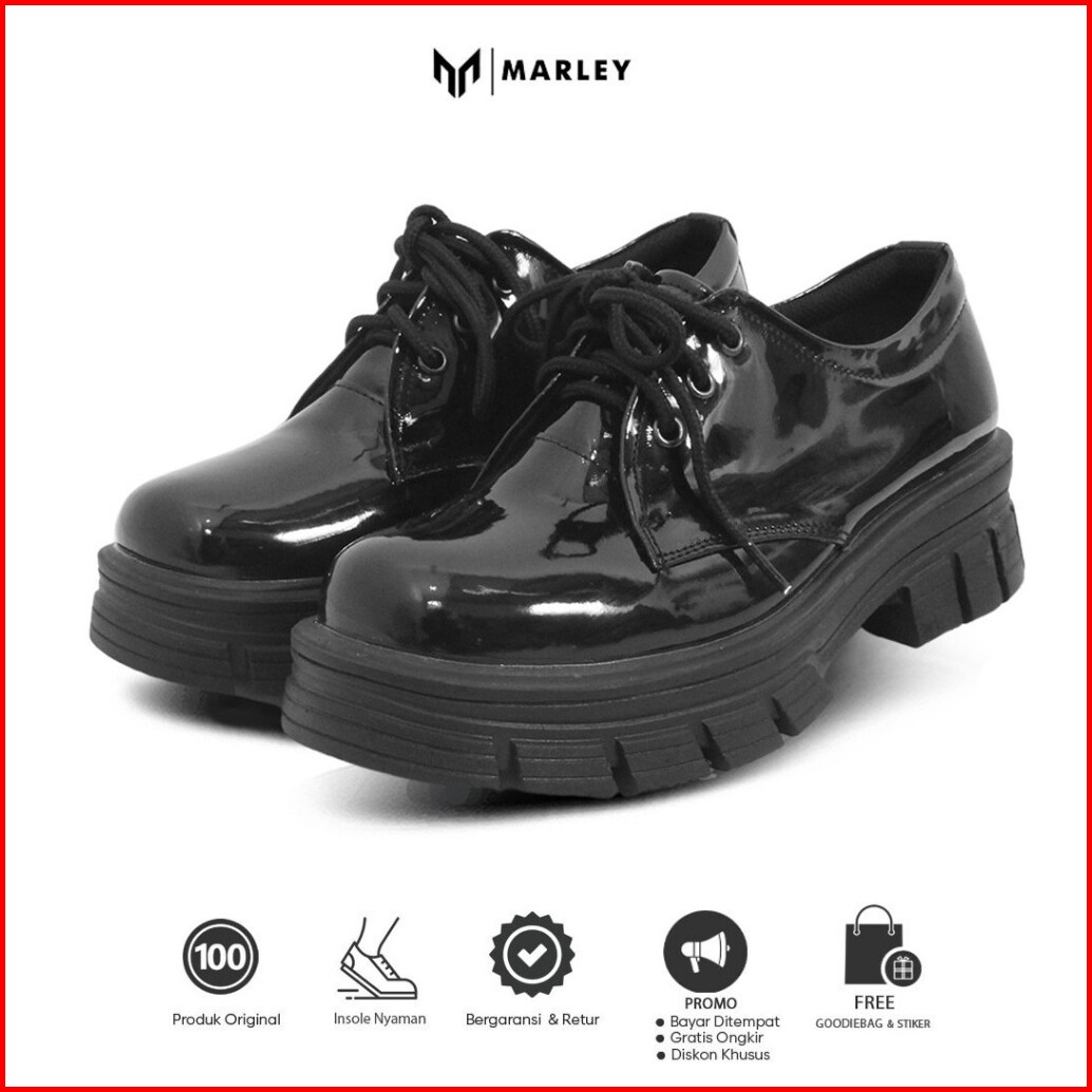Marley - Izeta 132-01 Sepatu Docmart Wanita Sepatu Loafers Formal Kerja Kantor Sintetis Premium Hitam